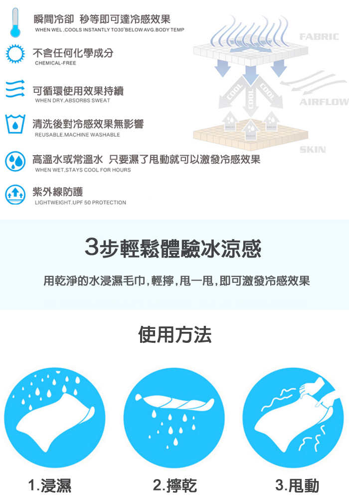 ◆吸水、擰乾、甩一甩~達到涼感