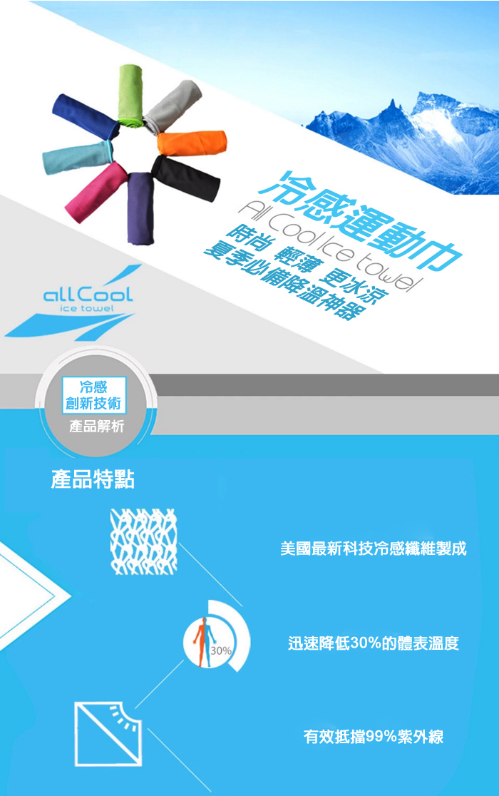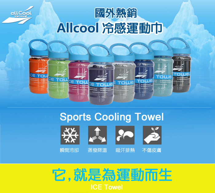 all Cool 極凍涼感冰涼巾 冰巾 瞬間涼感多用途 戶外運動 運動毛巾 涼感