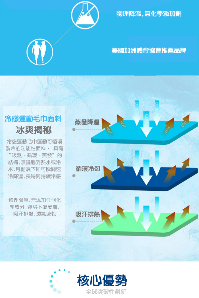 ◆透過持續吸附汗水即可維持降溫