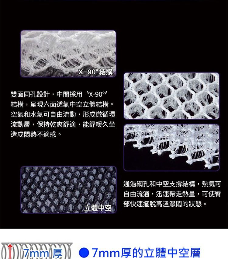 ●X-90°彈力絲結構可減壓,舒緩乘坐時壓迫感