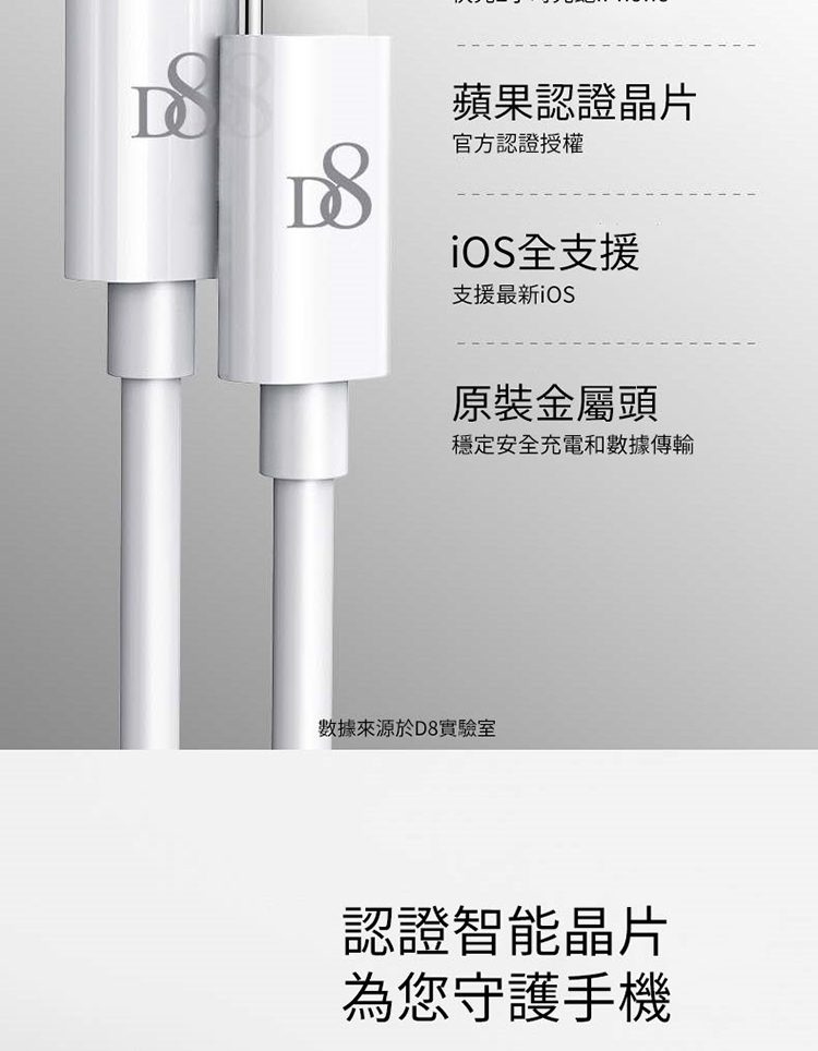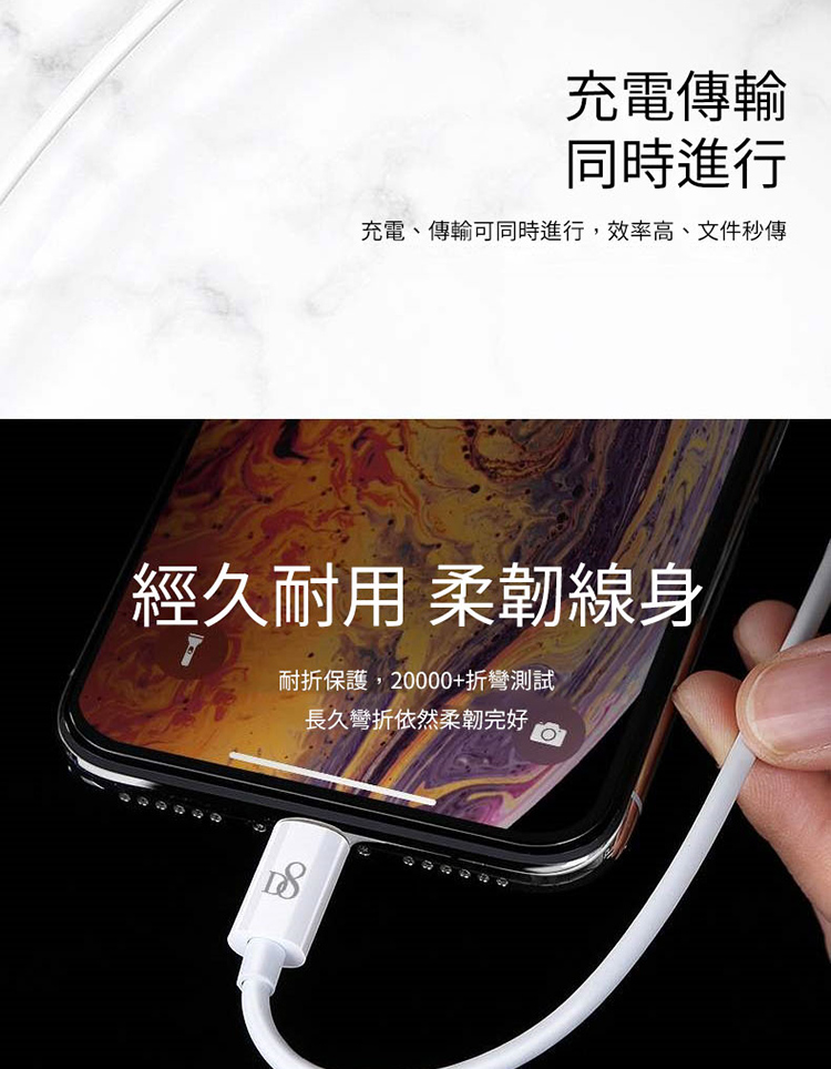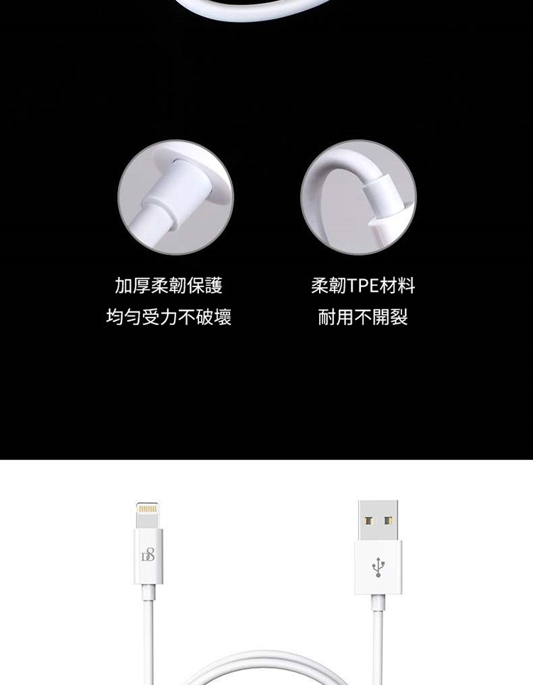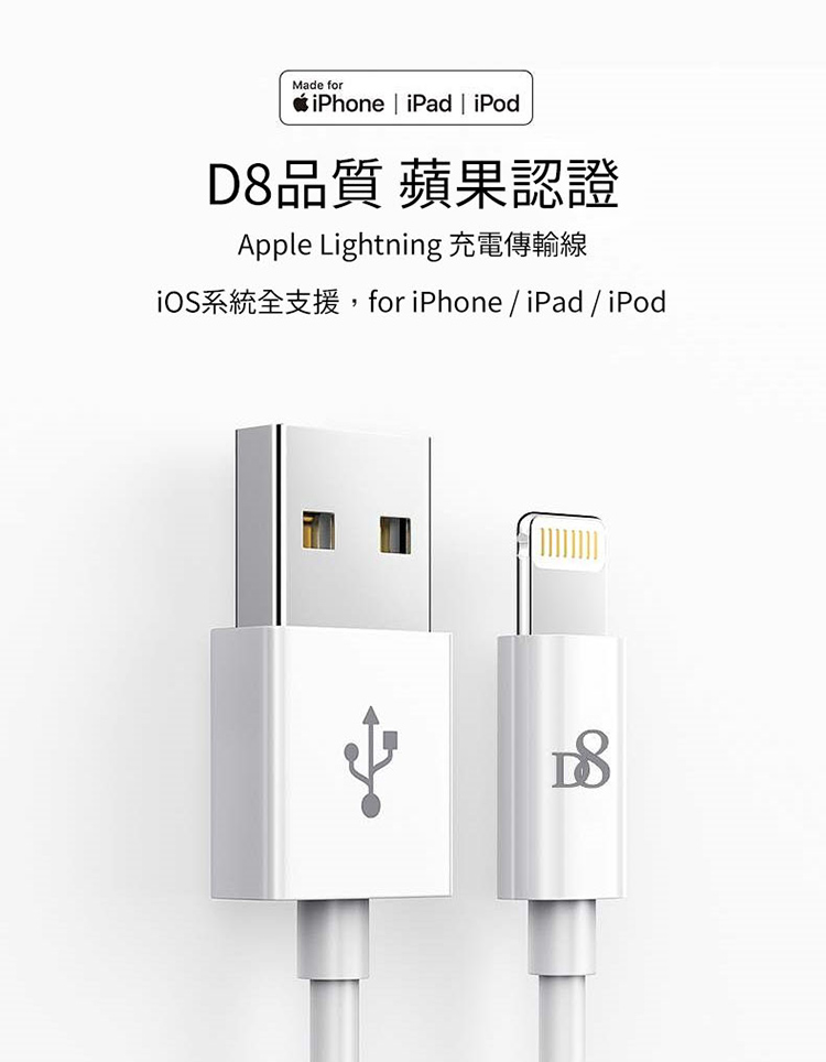 D8 APPLE MFI認證 Lightning 充電線/傳輸線-100cm for iPhone 12/12 Pro/12 Pro Max/12 mini/11(Pro Max)/XS/XS Max/XR/X/8/7/6/5/ipad air2/air