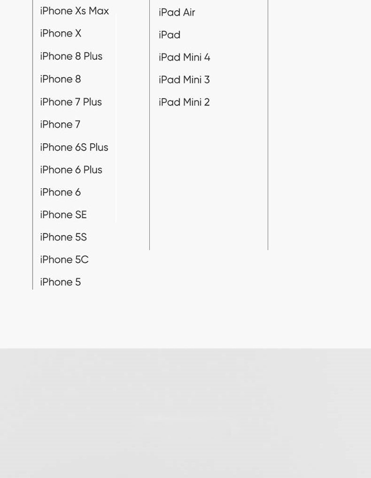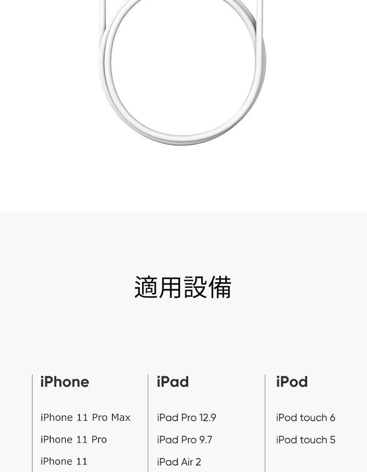 適用機型:iPhone 12,iPhone 12 Pro,iPhone 12 Pro Max,iPhone 12 mini, iPhone 11 Pro Max,iPhone 11 Pro,iPhone 11,iPhone XS,iPhone XS Max,iPhone XR,iPhone X,iPhone 8,iPhone 8 Plus,iPhone 7,iPhone 7 Plus,iPhone 6s,iPhone 6s Plus,iPhone 6,iPhone 6 Plus,iPhone SE,iPhone5,iPhone 5c,iPhone 5s,iPad Pro,iPad mini,iPad mini 2,iPad Air, iPad Air 2 ,iPad mini 3,iPad mini 4,iPod nano 第7代,iPod touch 第五代(32G/64G),iPod touch 第五代(16G)