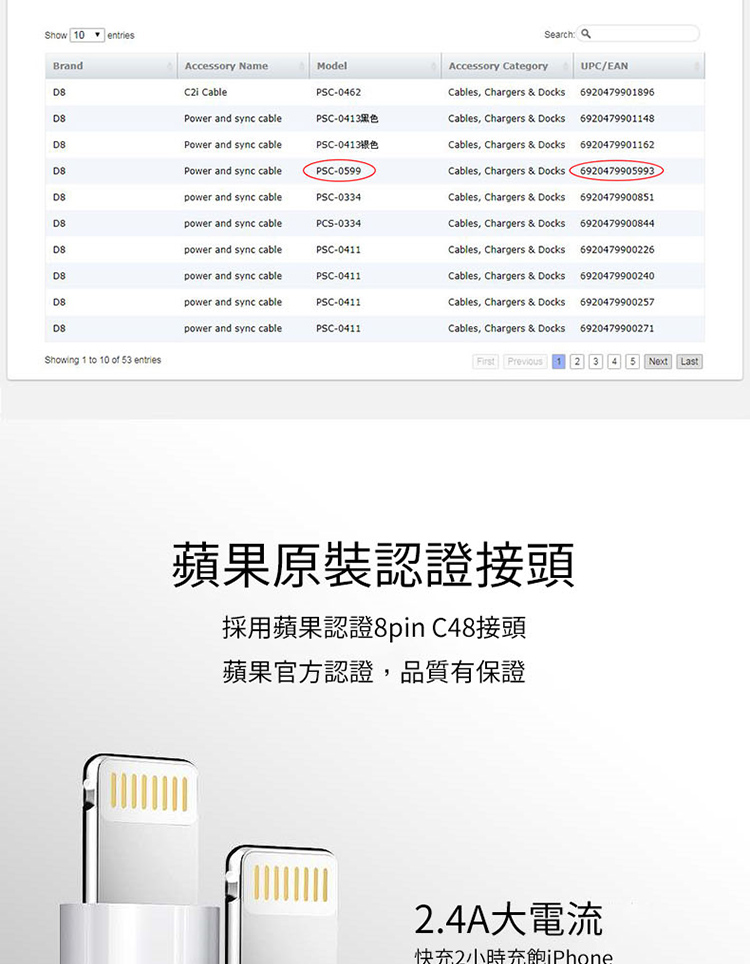 ●支援2.4A快充,可傳輸及充電