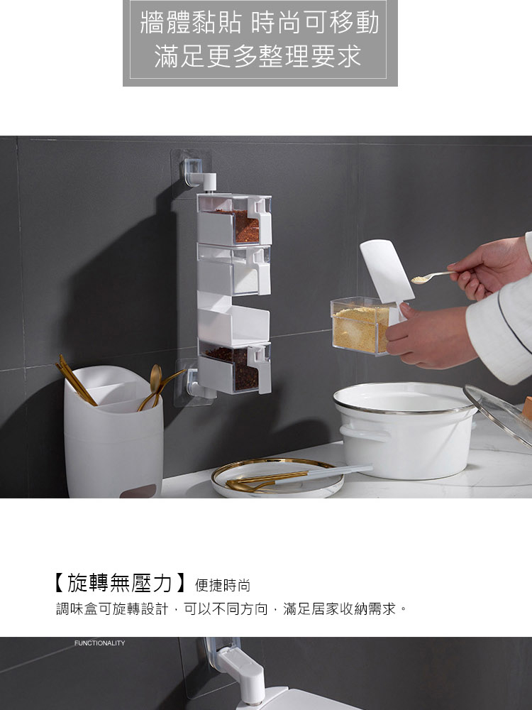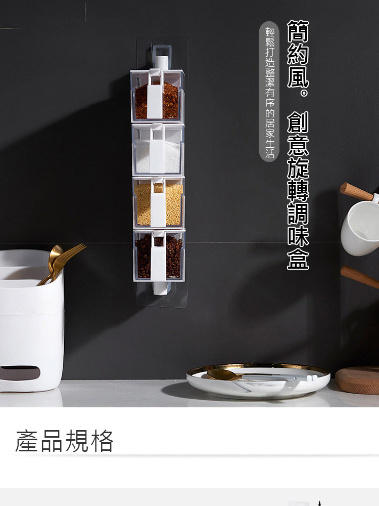 創意旋轉調味盒 廚房壁掛式旋轉收納調味罐 無痕黏膠不佔空間調味料收納架 免打孔廚房用品調料盒