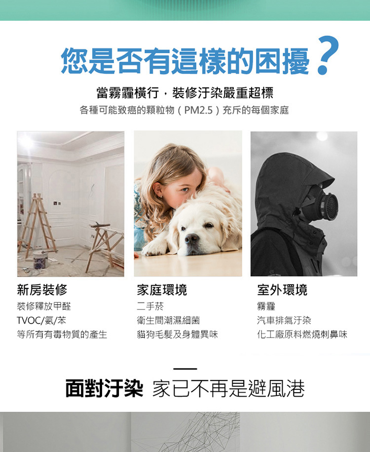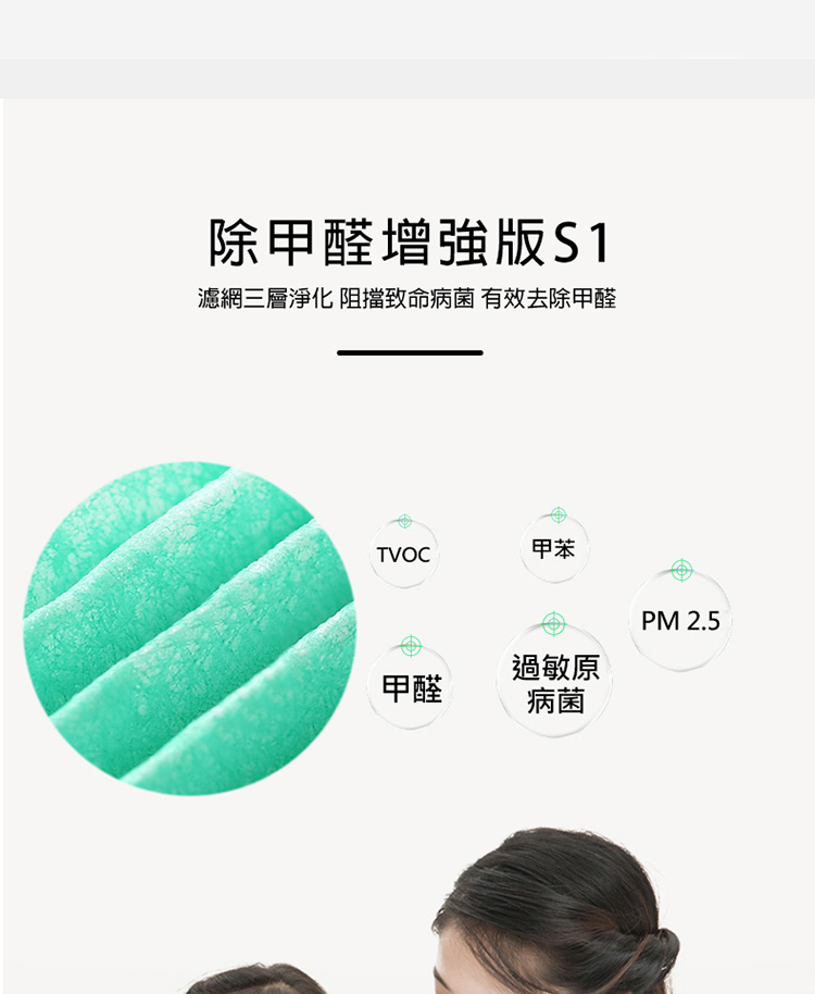 更強甲醛淨化能力,集塵過濾PM2.5、花粉、髒污