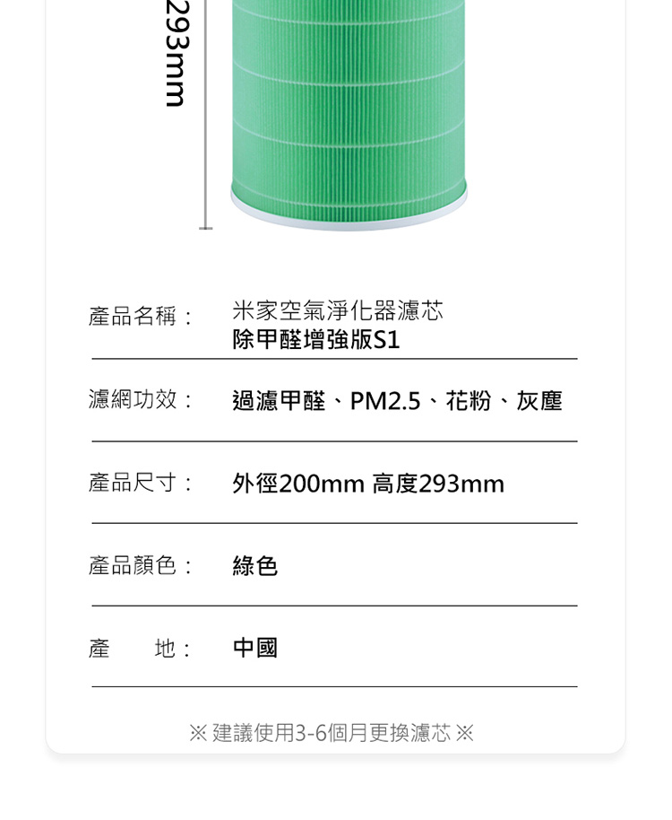 名稱:小米空氣淨化器濾芯 除甲醛增強版S1 (副廠)