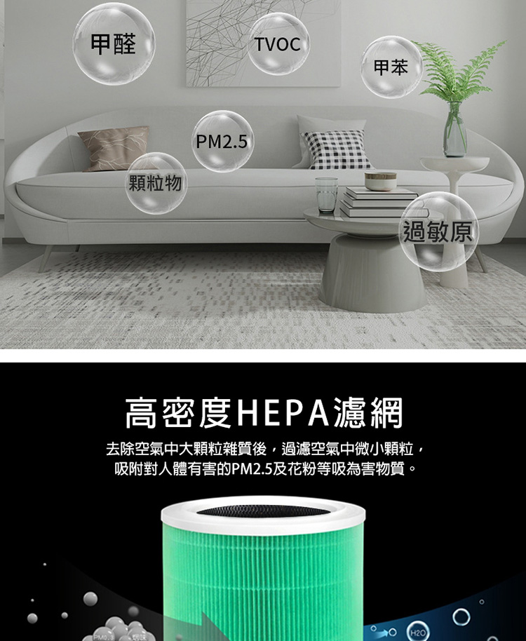 濾網功效:過濾甲醛、PM2.5、花粉、灰塵...