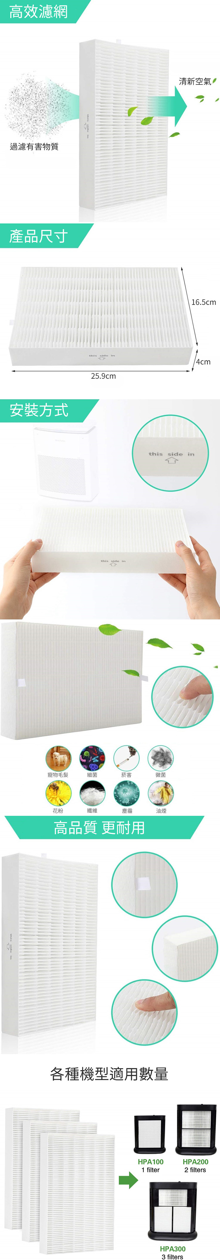 Honeywell 空氣清淨機 HEPA濾網/濾芯 副廠(3入) HPA-100/200/202/300/090通用