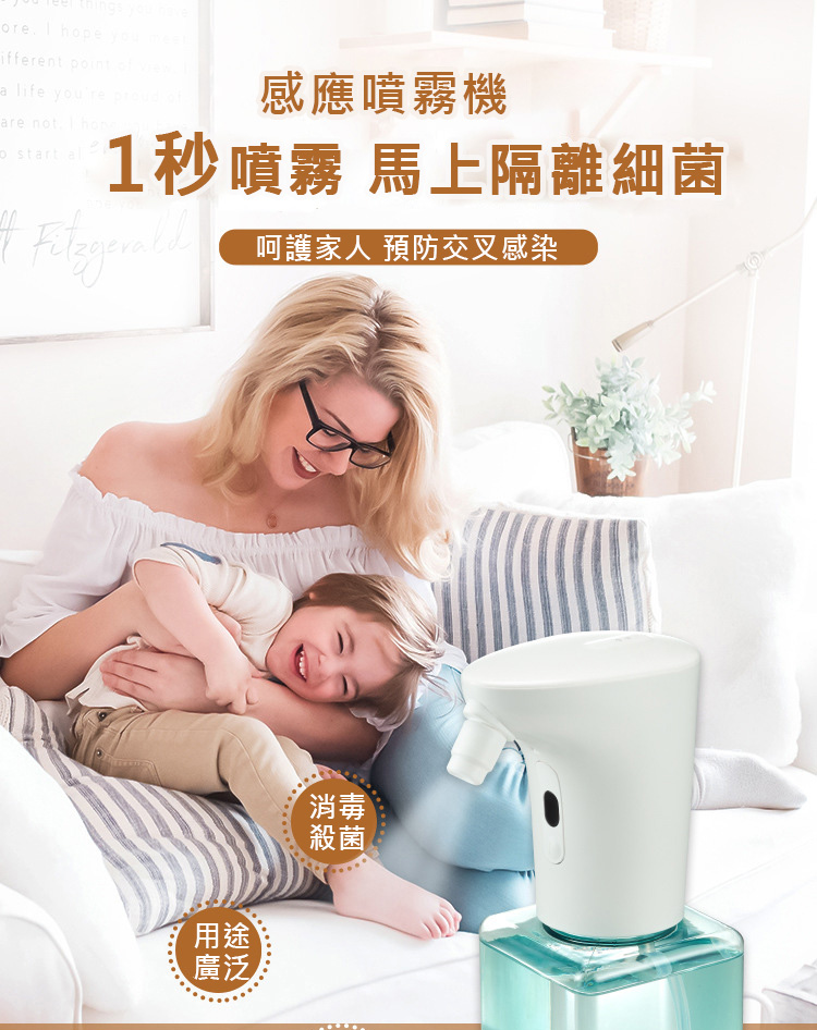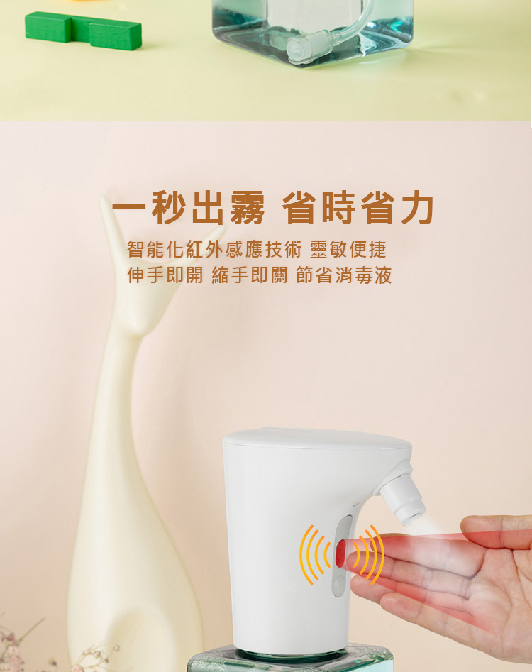 自動感應酒精噴霧機 紅外線感應 淨手 殺菌 杜絕病毒 IPX7防水 USB充電 (500ml)