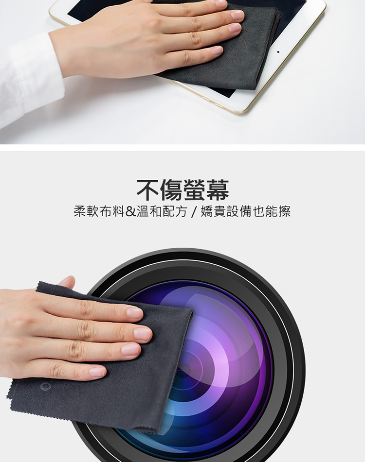 擦拭布仿麂皮材質,吸水/不掉屑,螢幕相機鏡頭都能擦