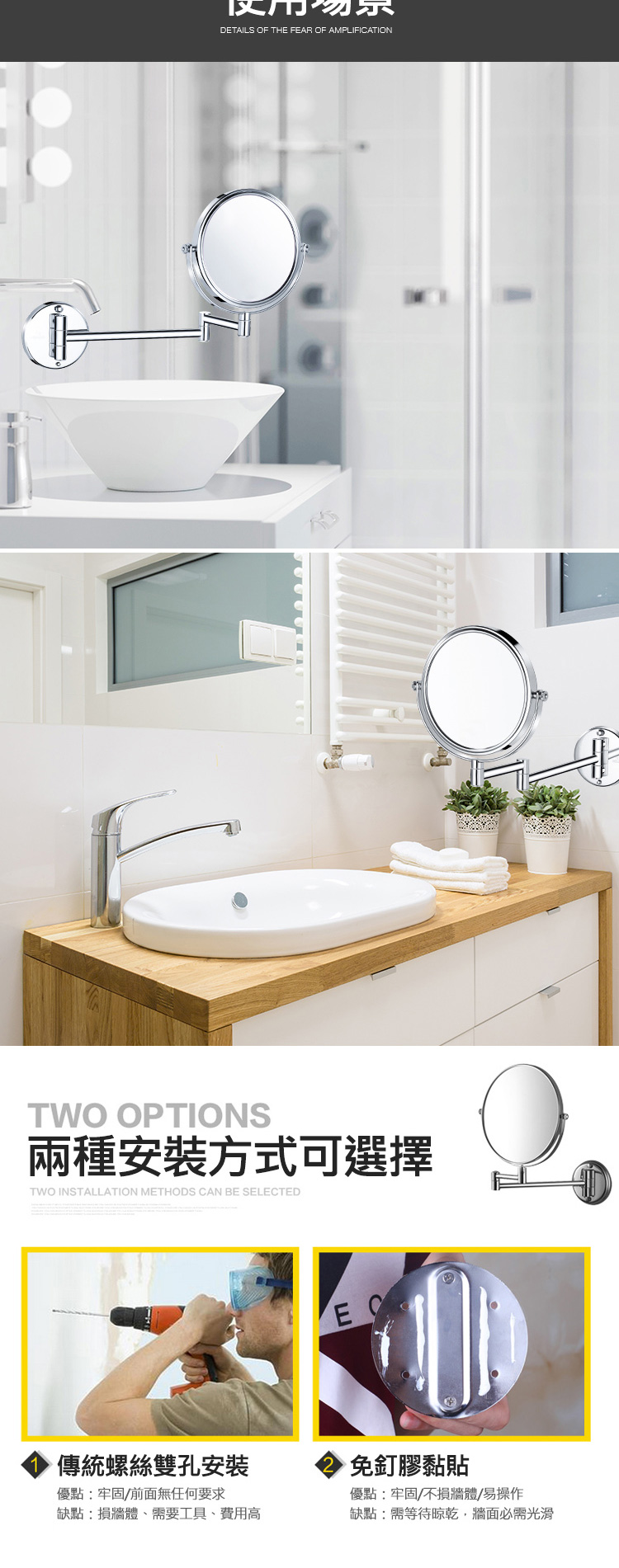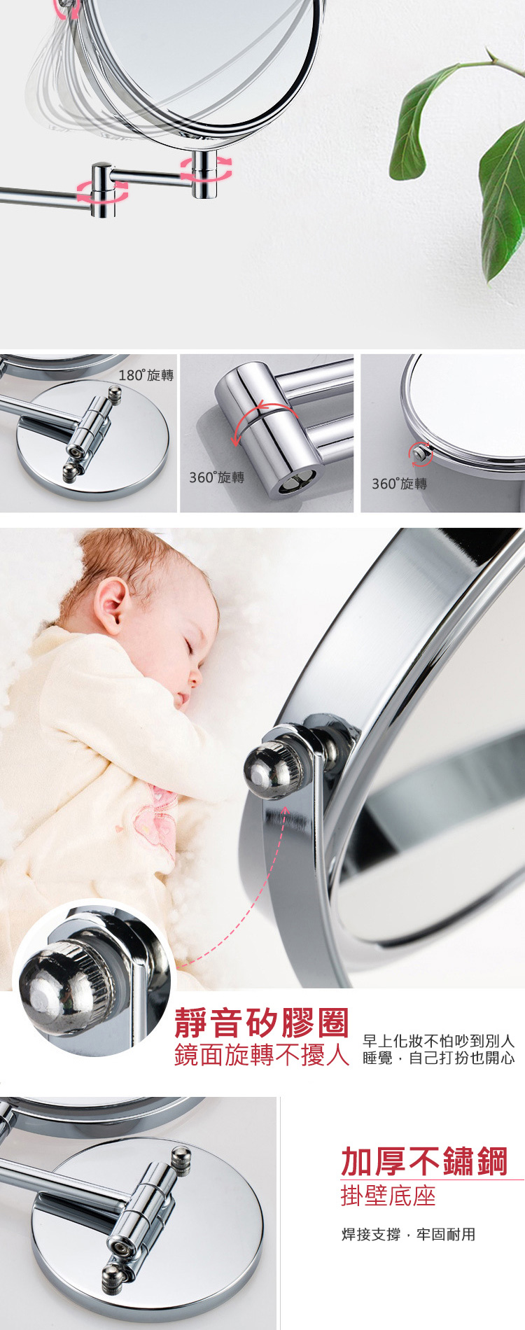壁掛式鏡面可360度自由翻轉,伸縮調整到適合自己的方向。