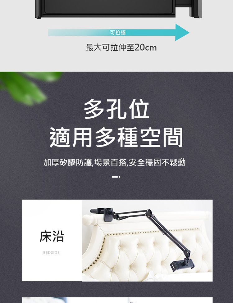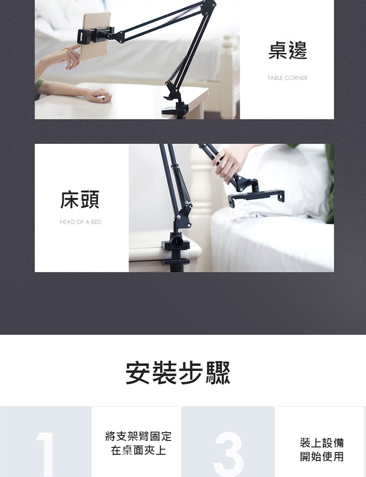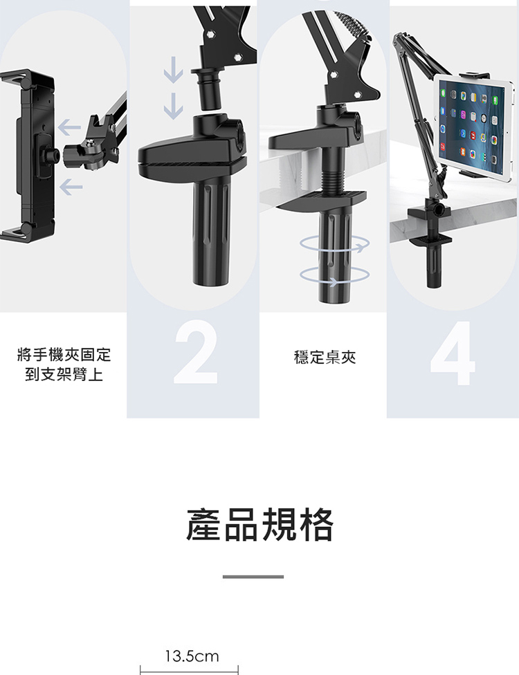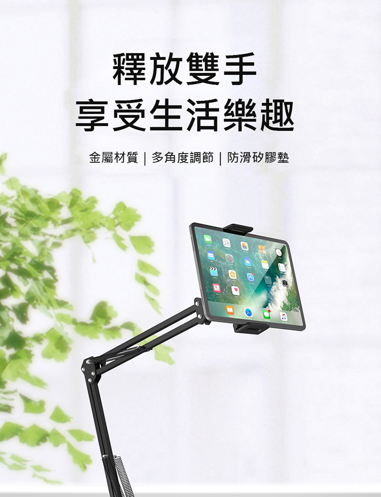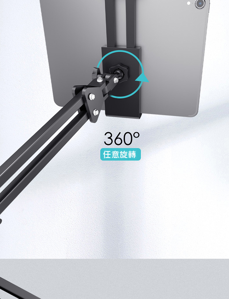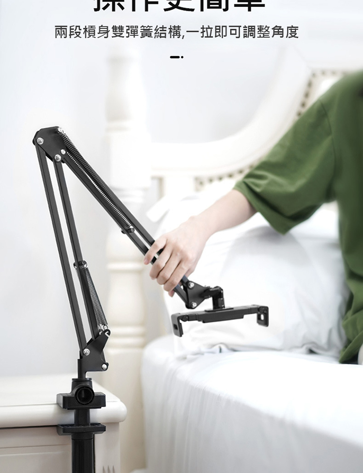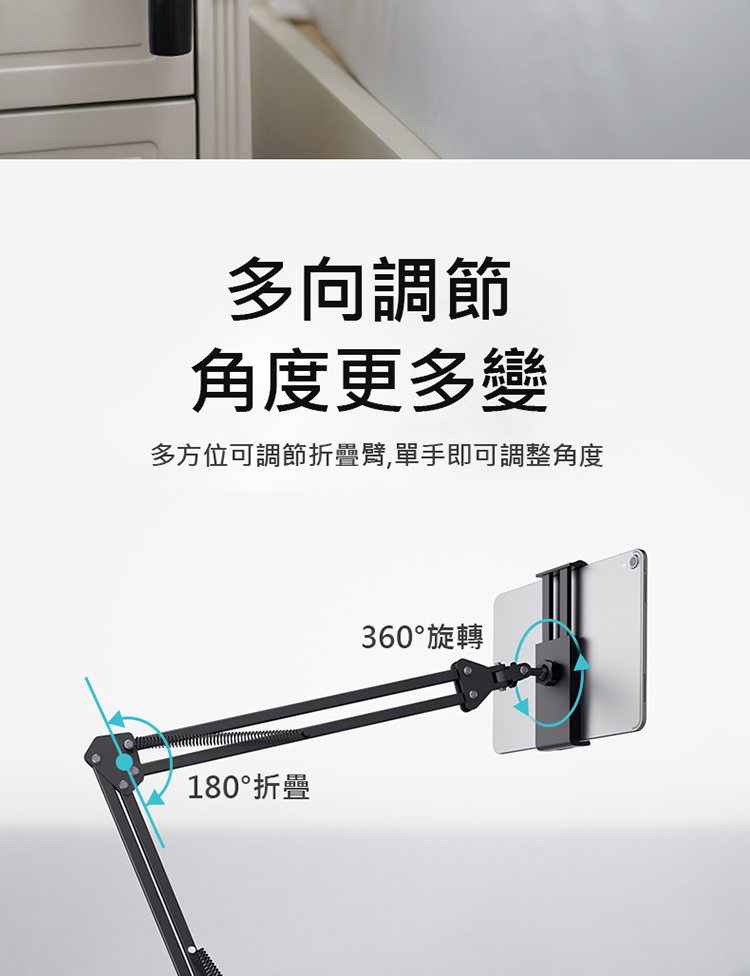 懸臂桌面手機/平板支架 360度旋轉 桌面夾式 床頭 床沿 懶人支架 追劇 直播
