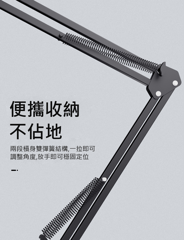 ◆兩段槓身雙彈簧,一拉即可調整角度,好操作
