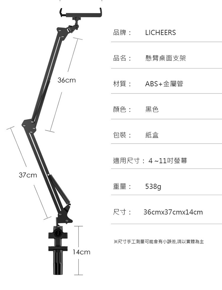 ◆夾具:底座約可夾7cm厚度/手機夾約可拉伸20cm