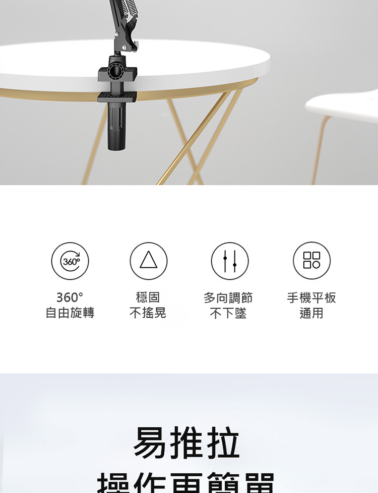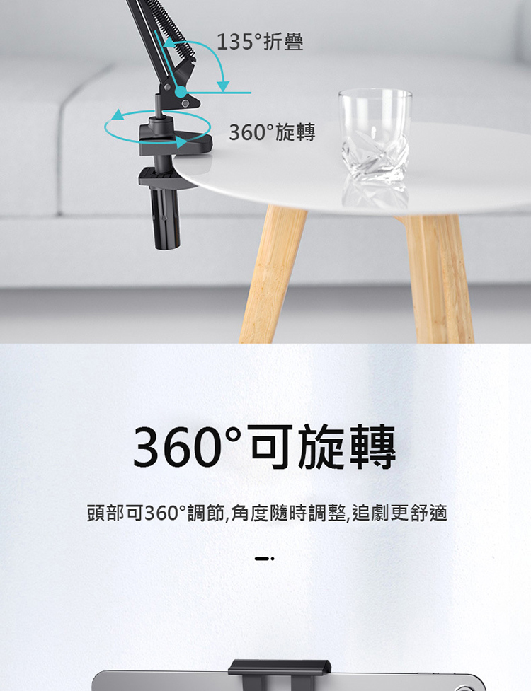 ◆夾具+底座可360°旋轉,單手即可操作,追劇更方便