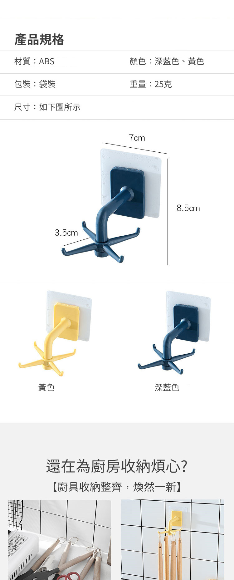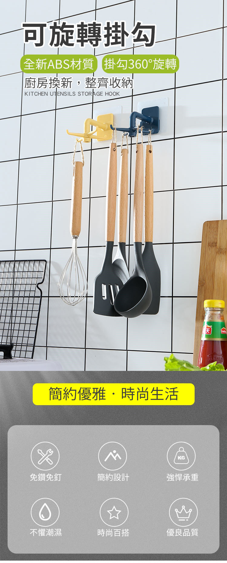無痕貼可旋轉收納掛勾 廚房收納、鑰匙、衛浴用品等