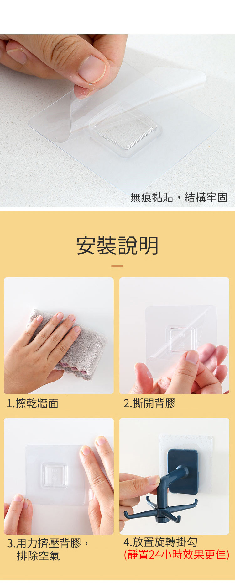 ※掛勾建議不要長期掛重物,若因黏貼安裝不確實或超載導致物品摔落,本公司概不負責!