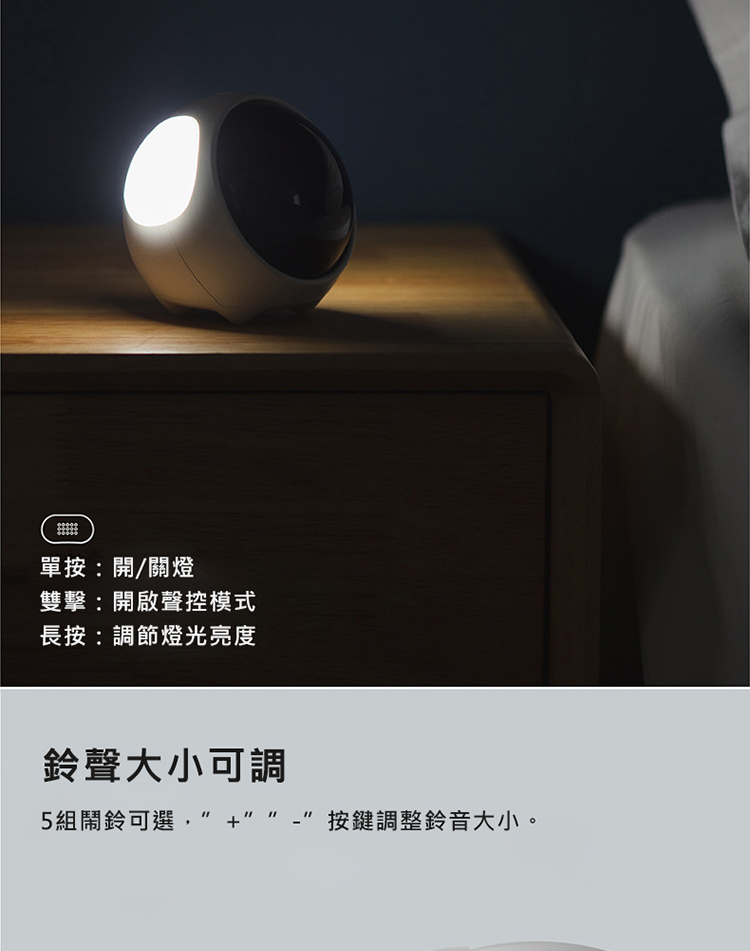 ◆夜燈功能(聲控/長亮),可無極調整亮度