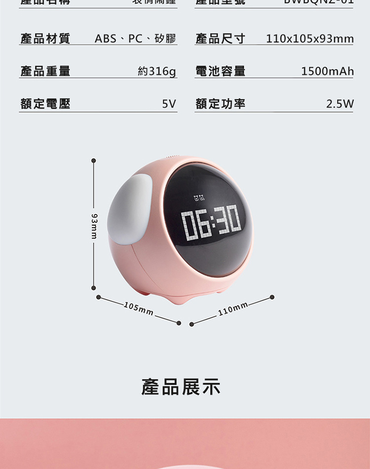 1.本商品時間並非永久顯示,觀看時間都需喚醒時鐘。