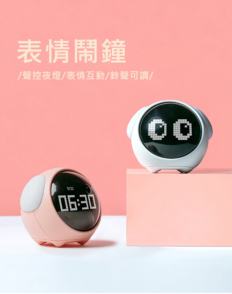 【hbk】表情鬧鐘+夜燈 互動表情 像素時鐘/聲控/夜燈 貪睡 LED顯示 溫度 USB充電