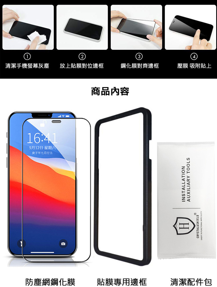 配件包含:鋼化膜+清潔配件包+貼膜神器(邊框)