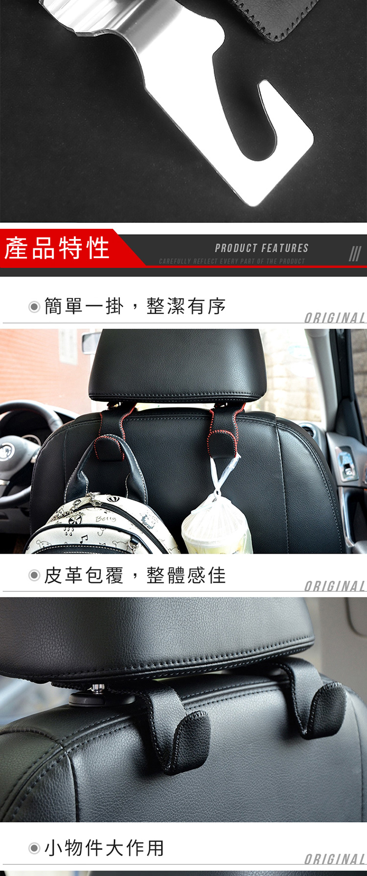 皮革汽車掛勾/椅背頭枕掛勾 (一組2入)