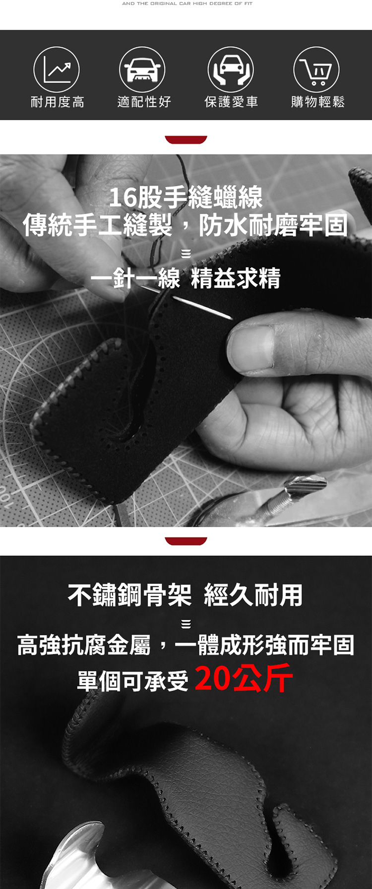 ●不鏽鋼材質包覆皮革,堅固強韌,荷重20kg