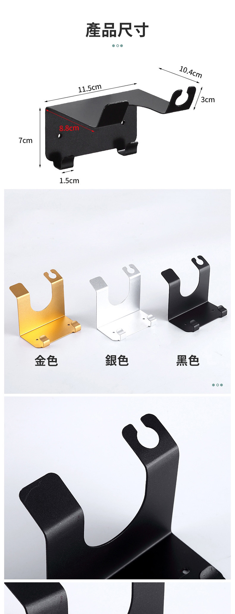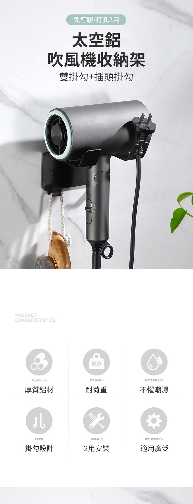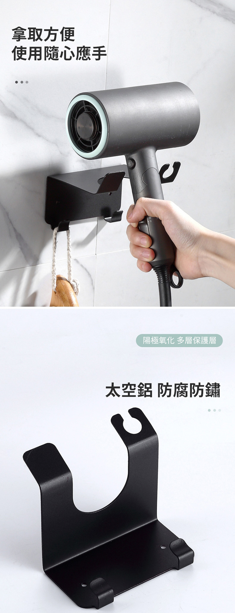 品名:太空鋁吹風機收納架(免釘膠)