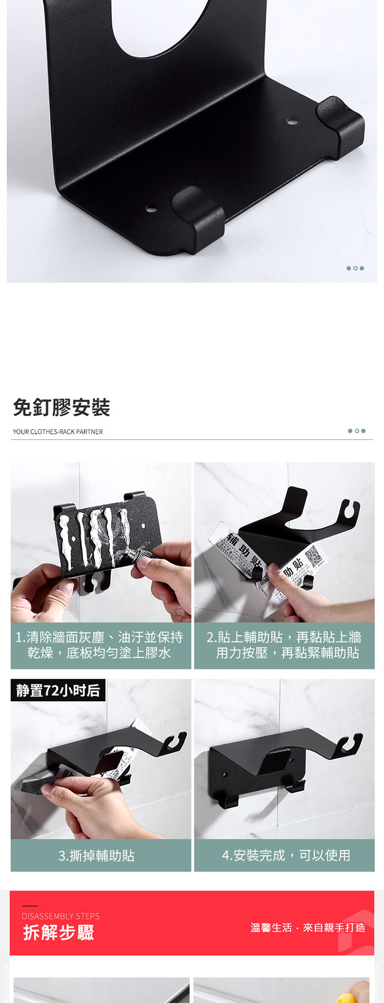 安裝方式:免釘膠黏貼/免打孔/打孔