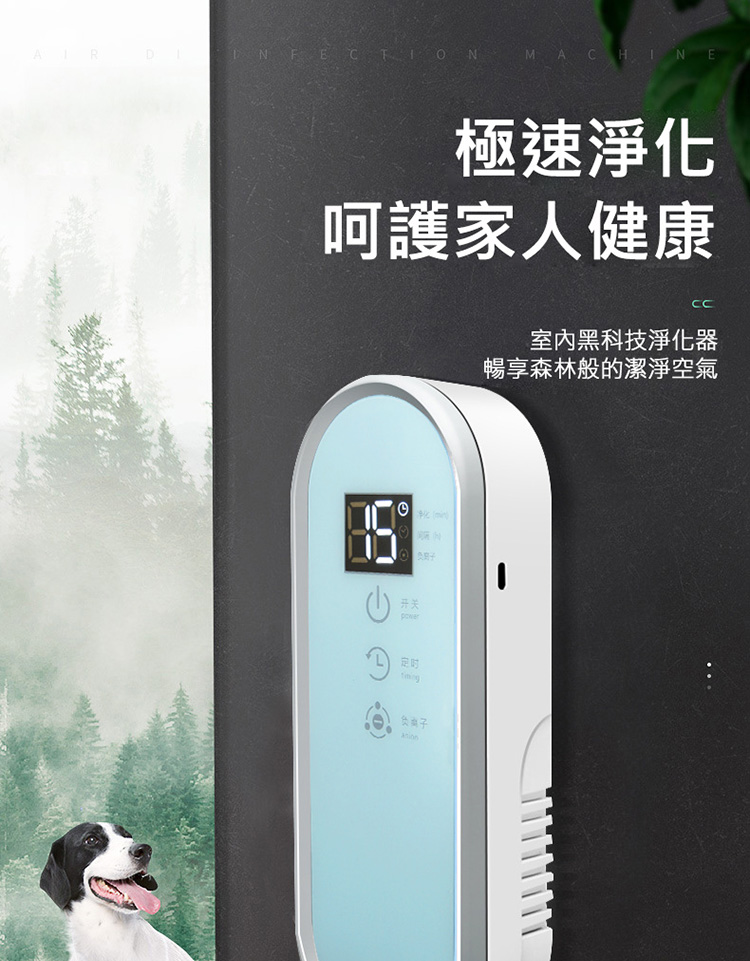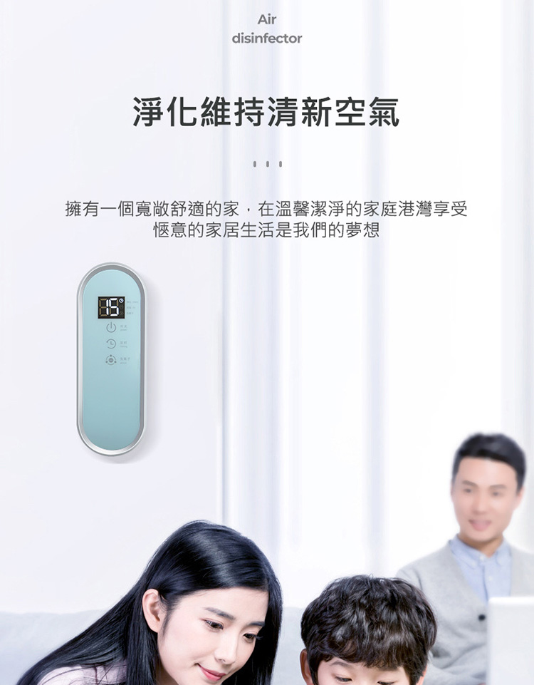空氣淨化消毒機,可固定牆上或平放桌面使用,通過風機吸入空氣,經過負離子對空氣進行進化,同時可以啟動臭氧功能,快速除味,淨化空氣。