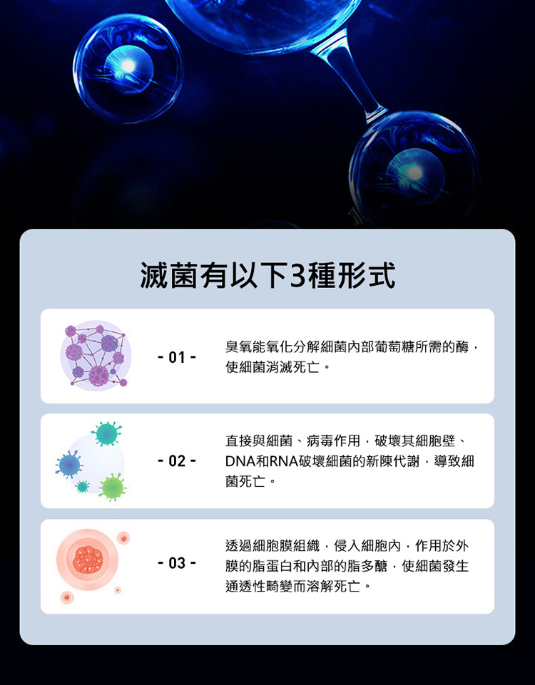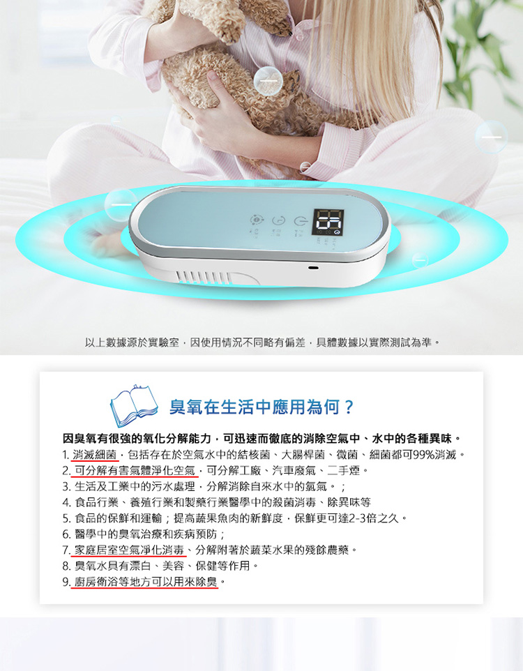 2.臭氧對人體呼吸道粘膜有刺激,故用臭氧消毒空氣,必需是在"人/寵物沒在現場"的條件下,消毒後請通風10分鐘以上在進入。