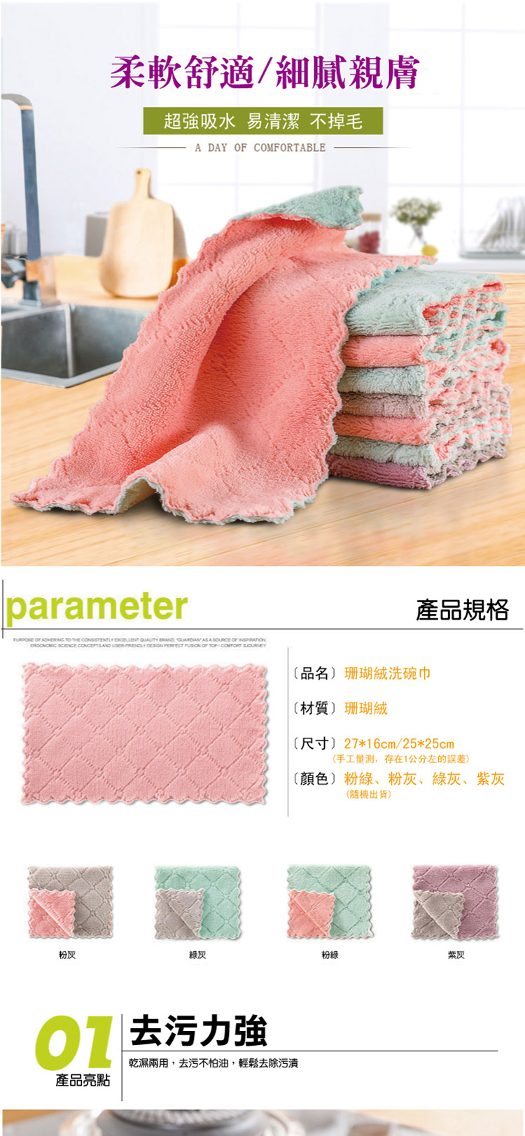 加厚雙色抹布 超吸水珊瑚絨抹布 廚房吸水抹布 不沾油吸水抹布 珊瑚絨抹布 百潔布 洗碗布 去汙抹布