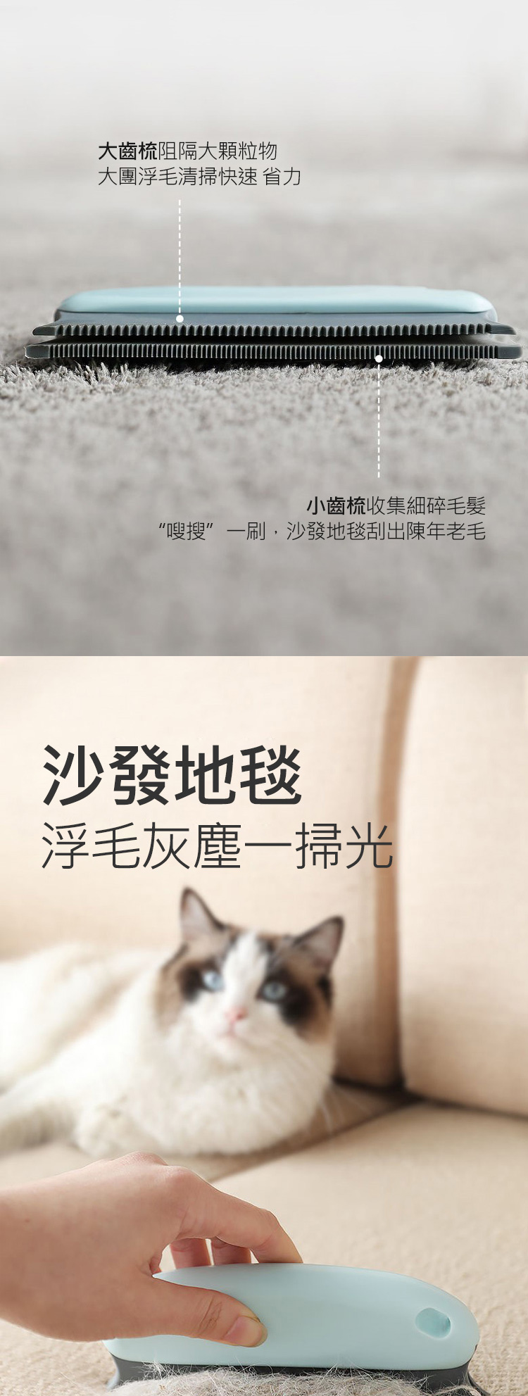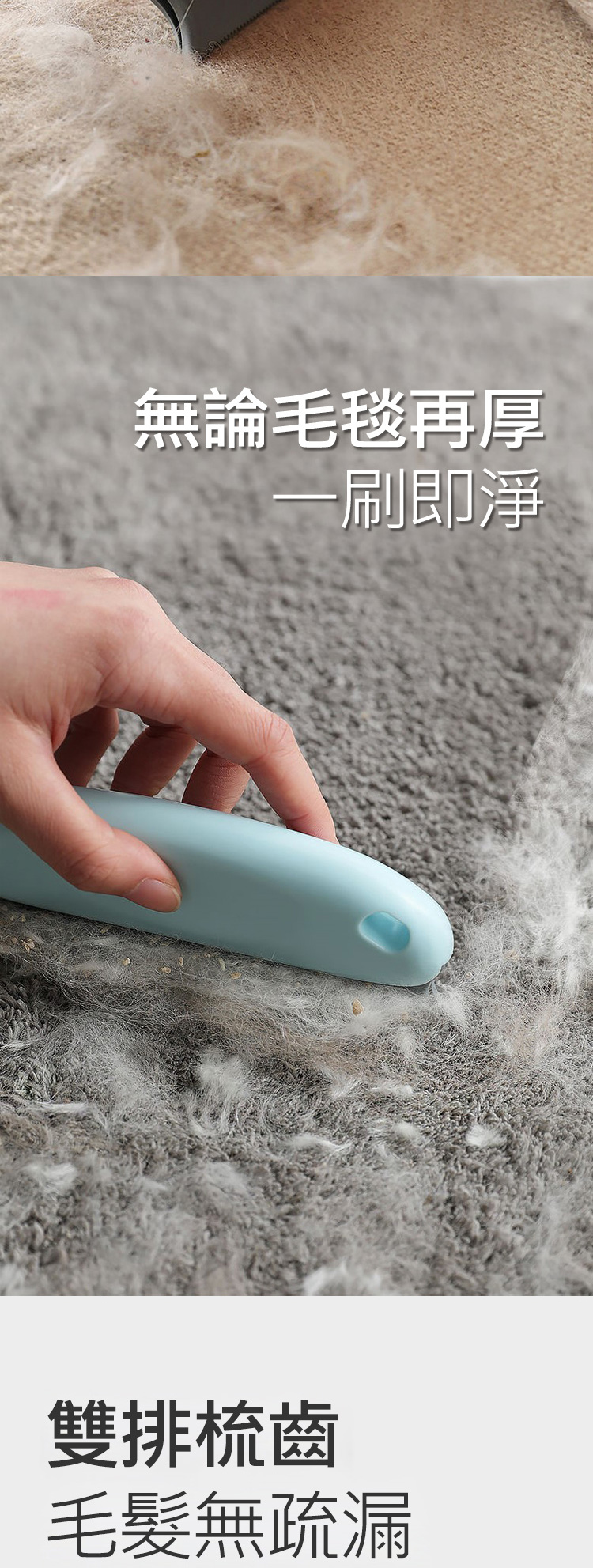 雙排梳齒直達毛毯底層,貓毛/灰塵邊刷邊收,省時省力
