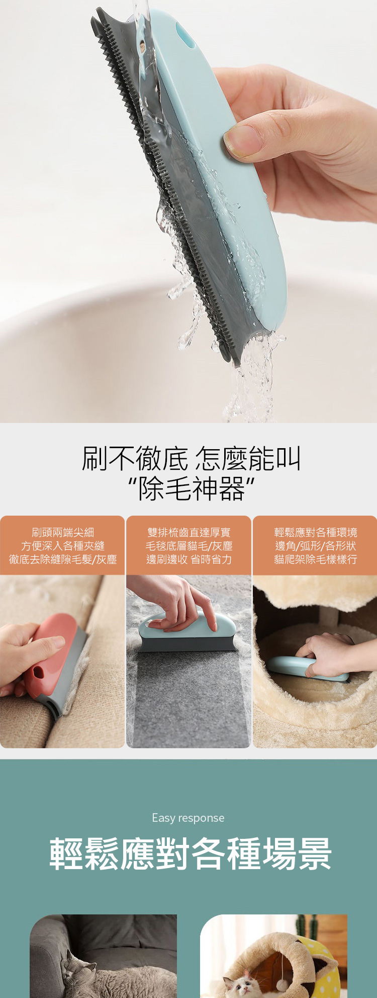 除毛刷本身不會沾附毛髮,一沖即淨,重複使用,維護保養更簡單!