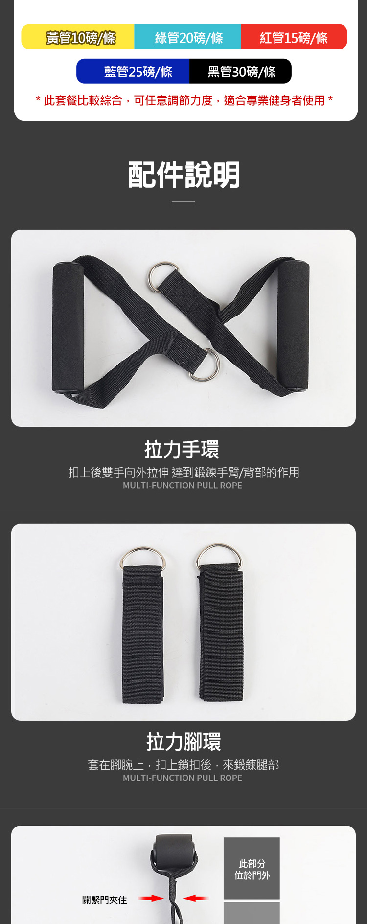 拉力參數:黃色10磅 綠15磅 紅20磅 藍25磅 黑30磅