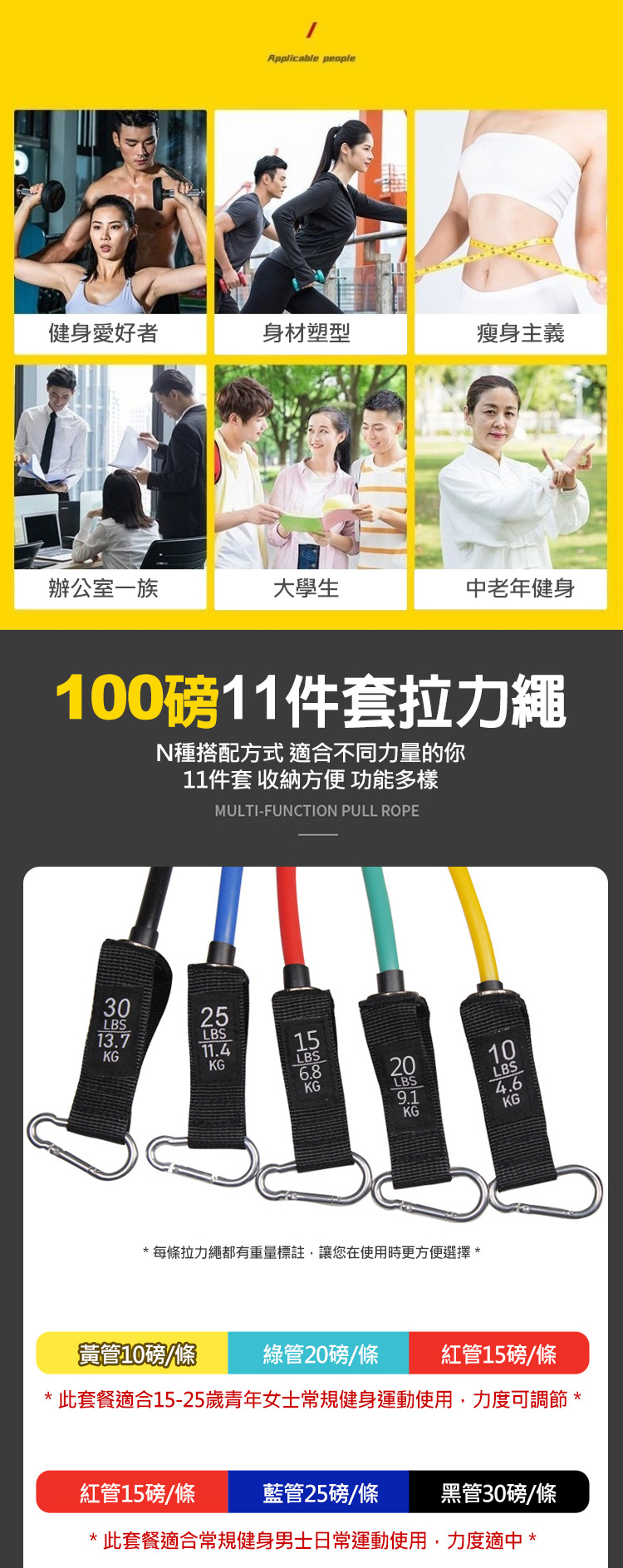 產品名稱:11件 拉力繩套裝