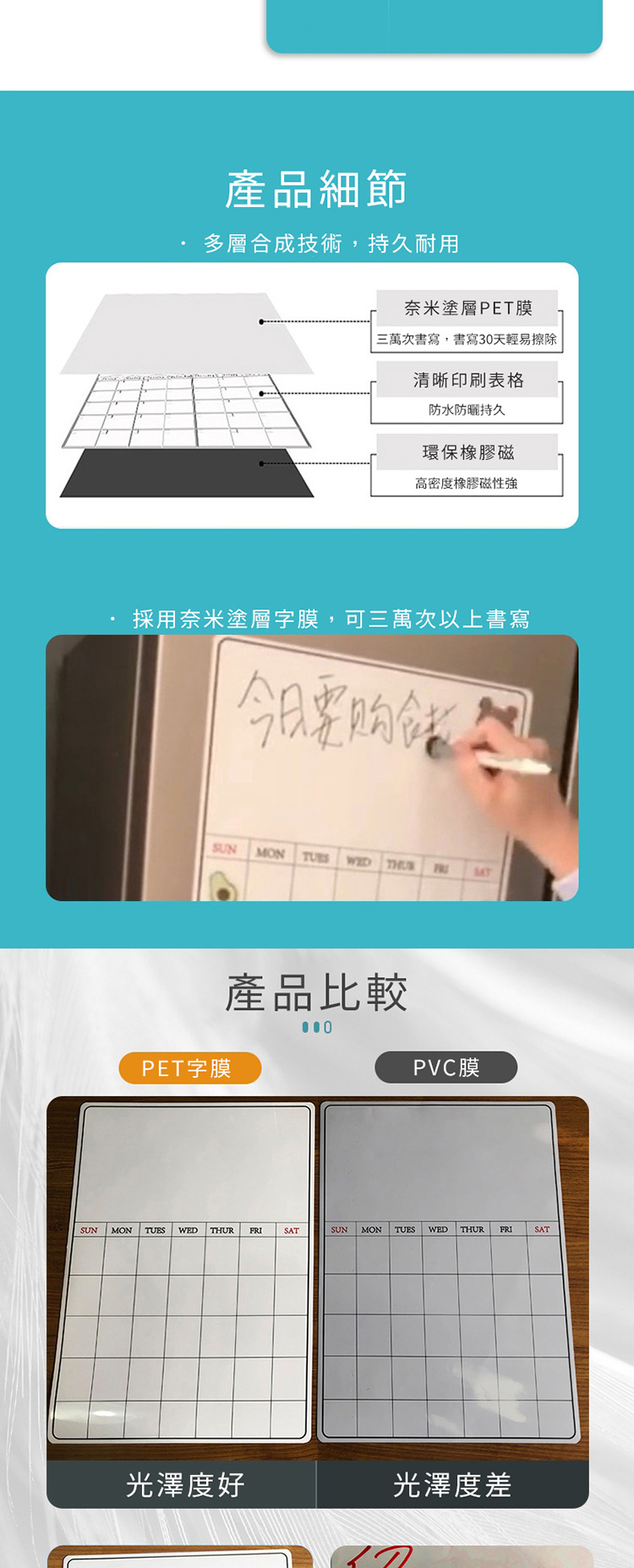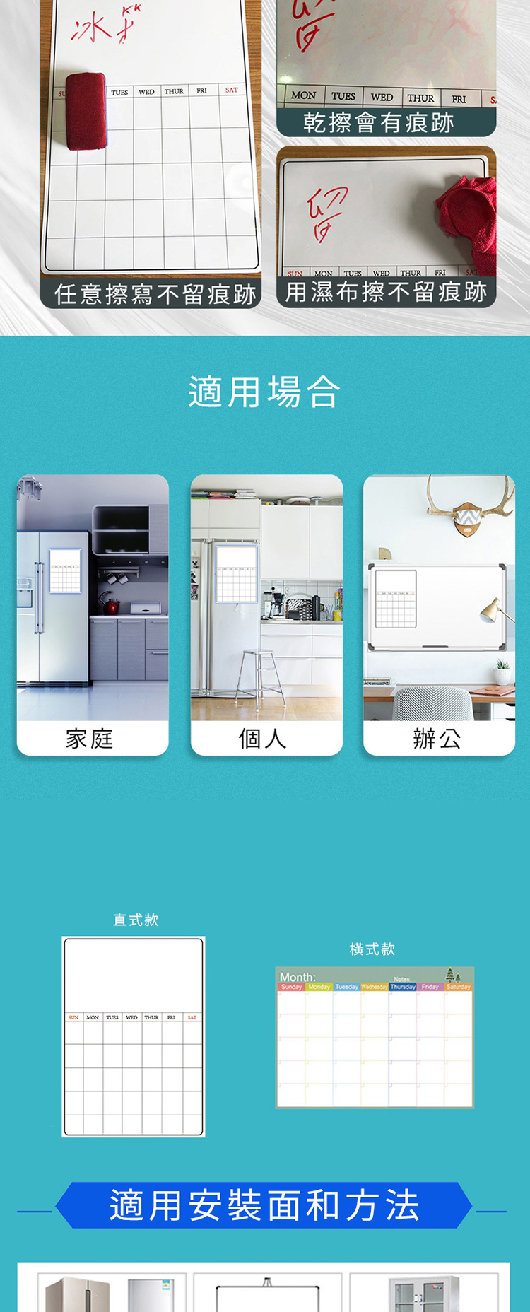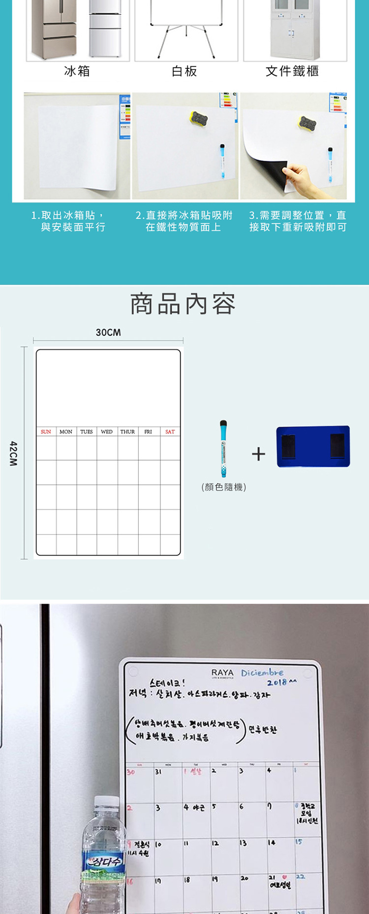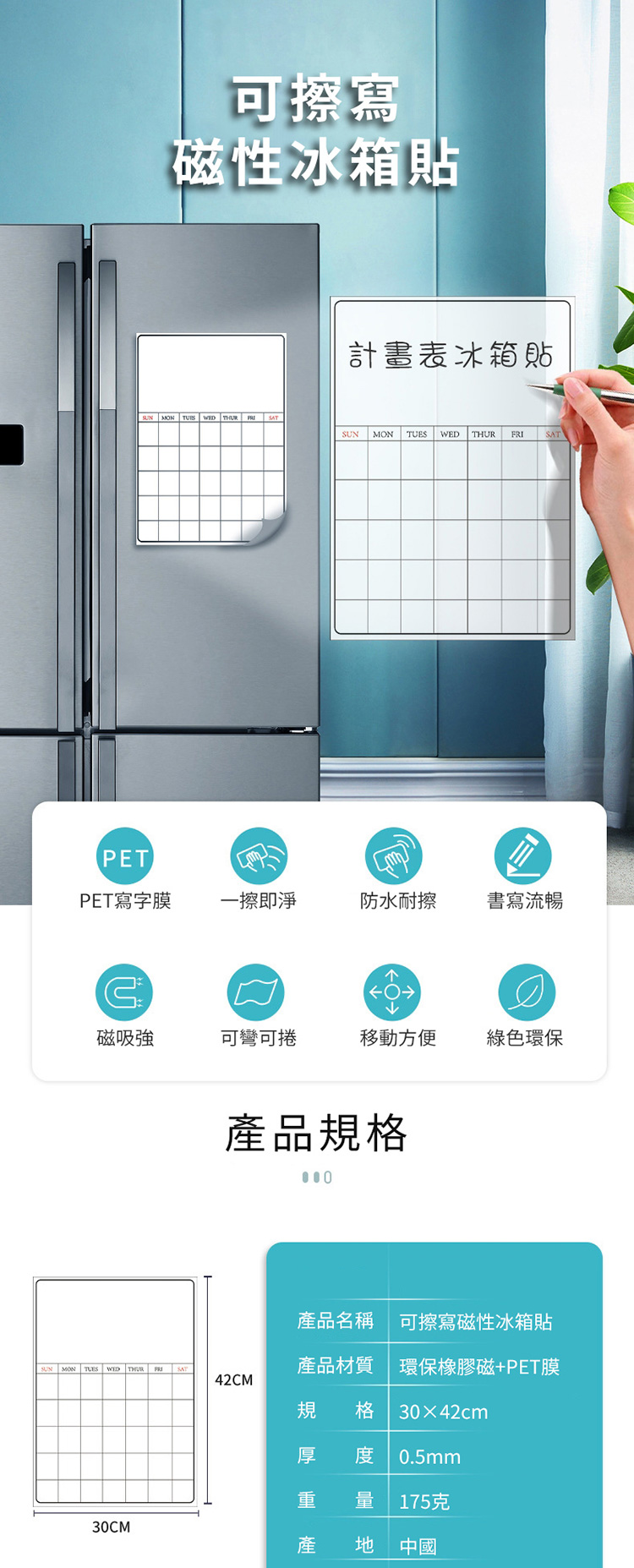 可擦寫磁性冰箱貼 白板貼 書寫可擦拭白板貼 月計畫30x42cm