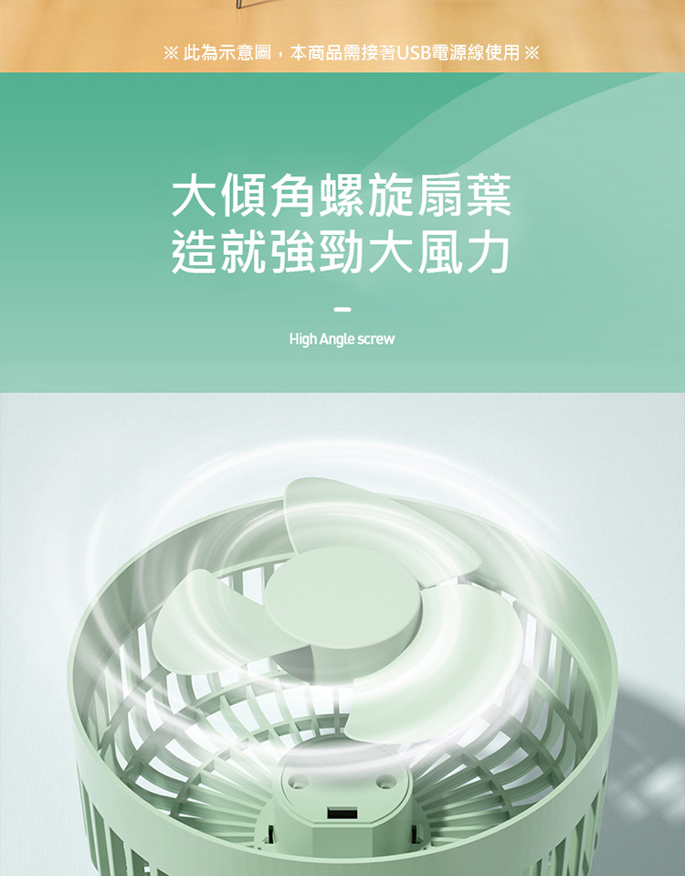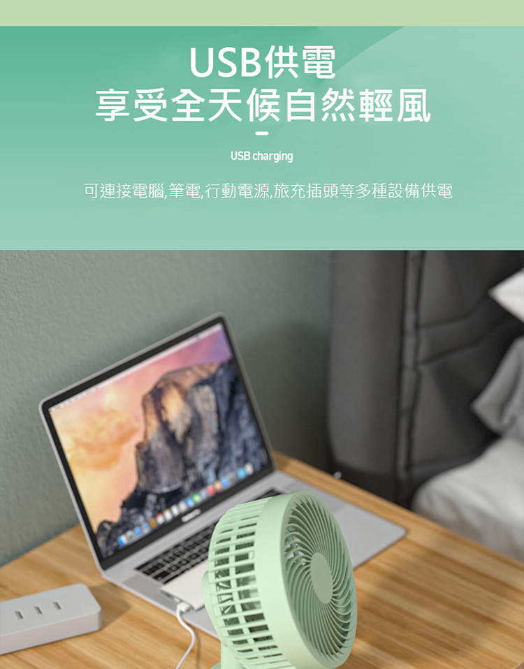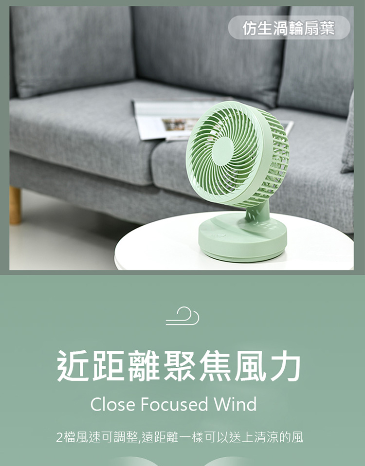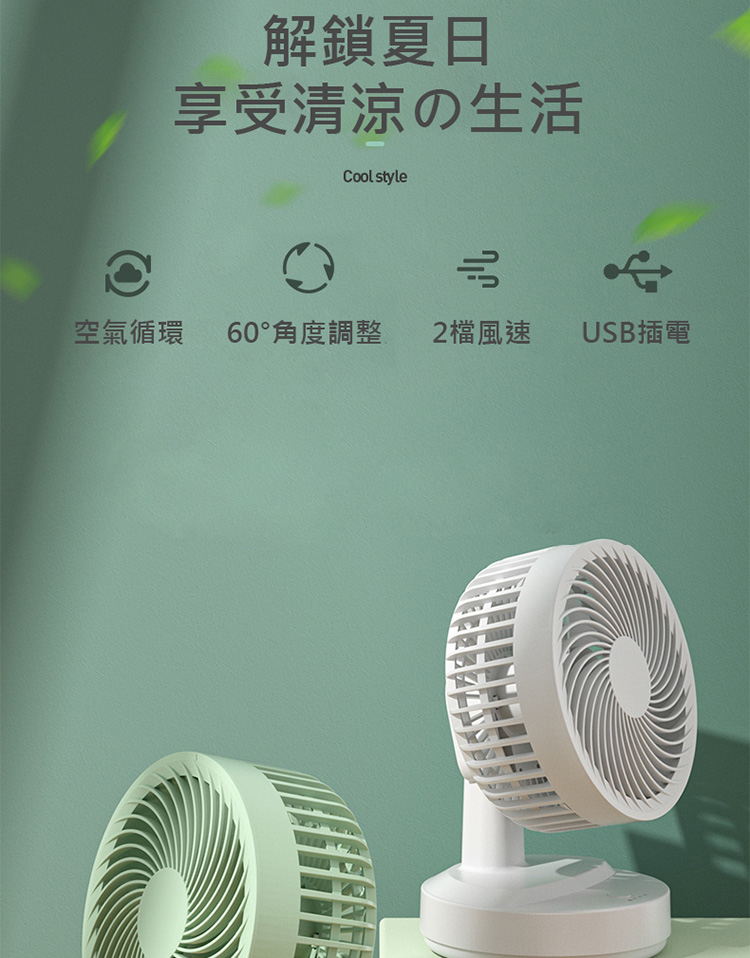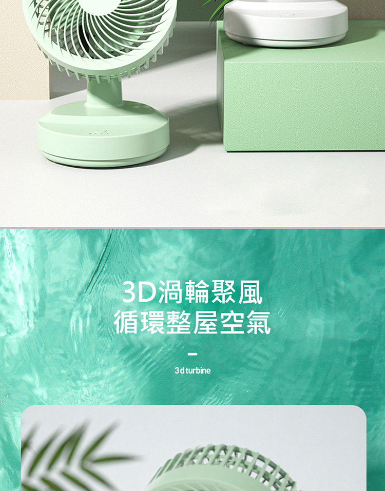 3D渦輪循環風扇 循環扇 桌面風扇 USB風扇 可調角度 大風力 兩檔風速 超靜音 (插電款)