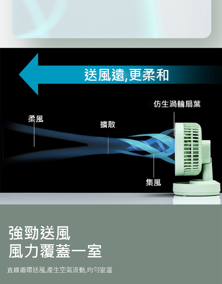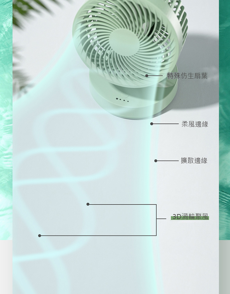 ◆仿生渦輪扇葉設計,集風-擴散-柔風三階段