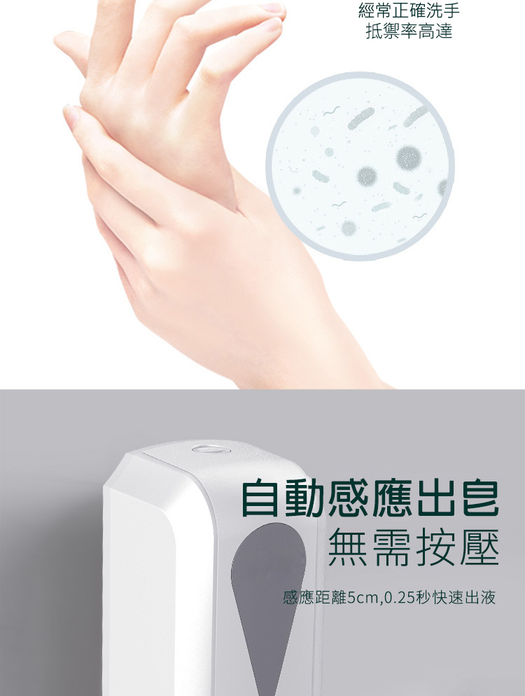 ◆紅外線感應式出皂,免接觸無需按壓,感應距離5cm,025秒快速出液,避免交叉傳染