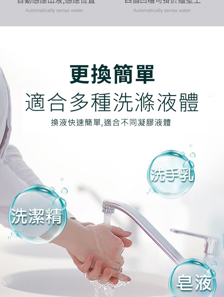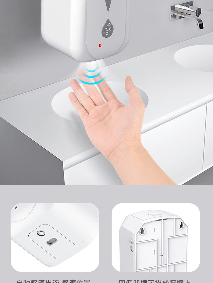 ◆便捷掛壁式自動感應出液器,適合多種皂液體,適合多種場合:家用洗手間、公共廁所、商場、公司學校、餐飲後廚、醫療護理、洗手台等,免接觸出液,抵禦細菌,有效呵護更放心!