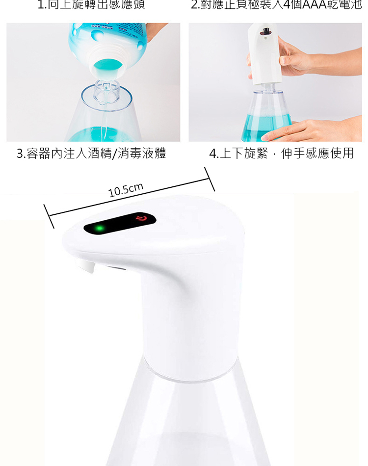 自動感應酒精噴霧機 紅外線感應 免接觸殺菌消毒器 電動酒精機 淨手 殺菌 杜絕病毒 乾電池款(480ml)