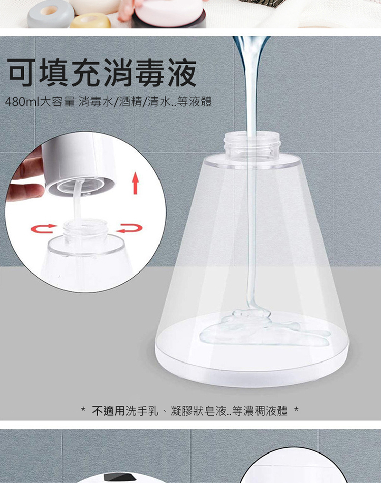 ◆噴霧款式:可加消毒水、酒精、清水等液體(不適用乳狀/凝膠狀皂液體)。