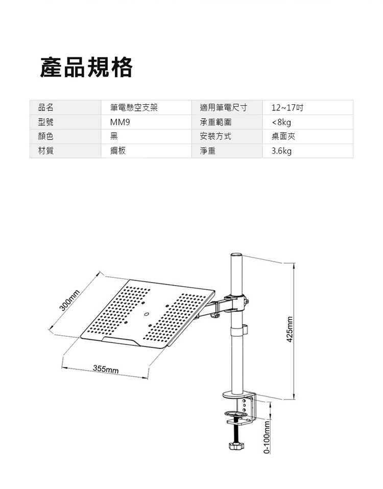 ◆桌面夾式安裝,穩定牢固(厚度9cm內皆適用)