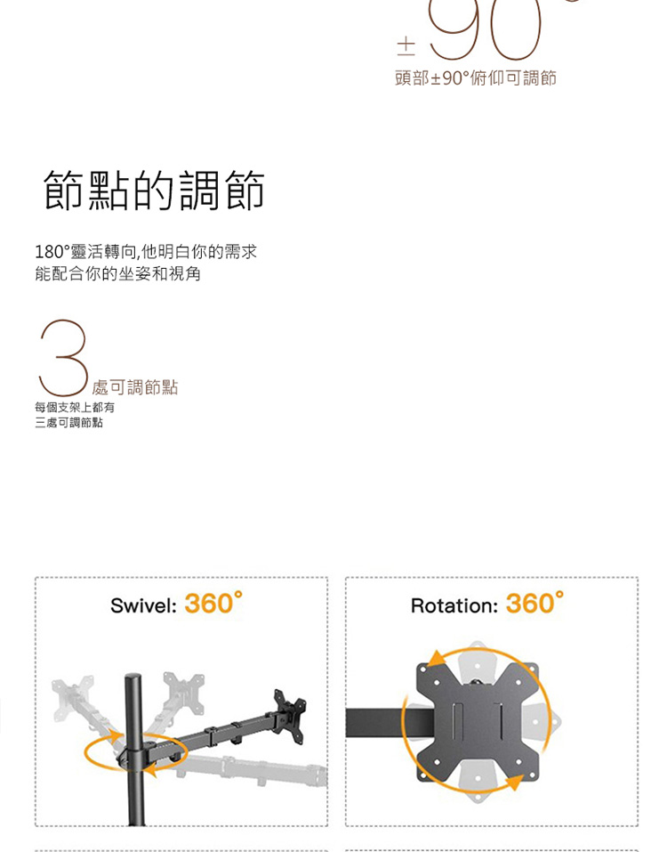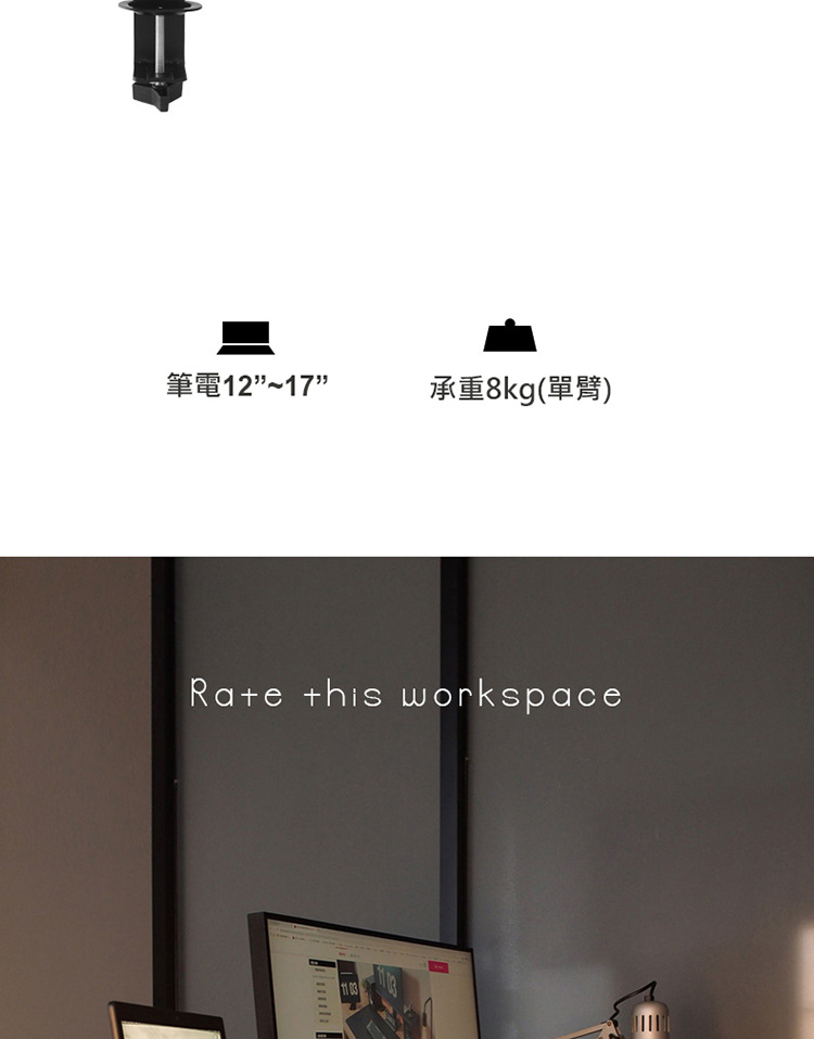 ◆筆電/電腦螢幕兩用款,筆電12~17"/螢幕17~27",可承重8kg