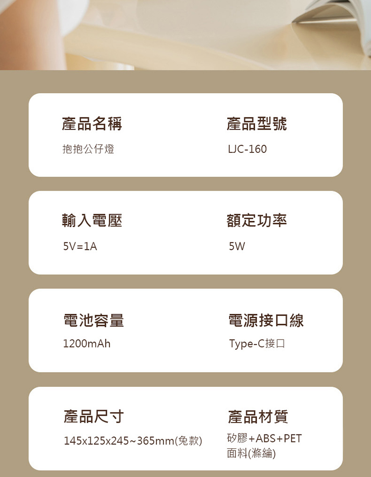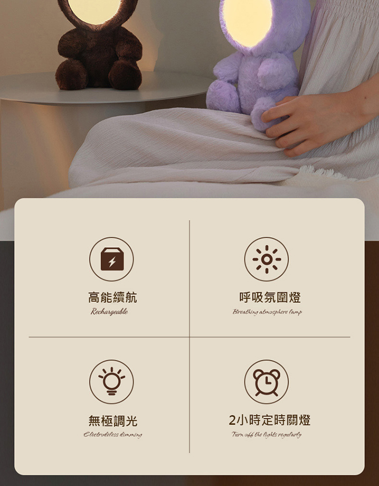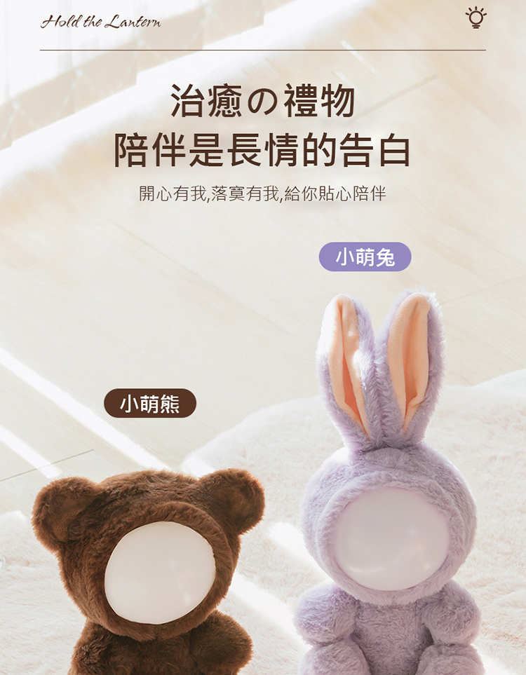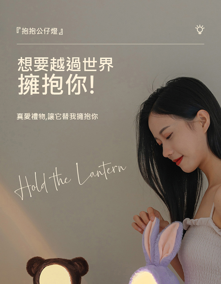 抱抱公仔燈 公仔燈 兔子燈 玩偶造型燈 小夜燈 伴睡燈 床頭燈 禮物 聖誕節 (USB充電)