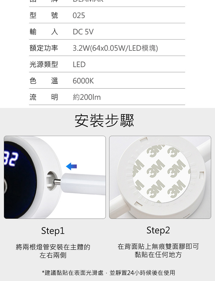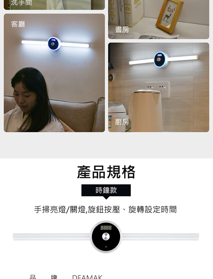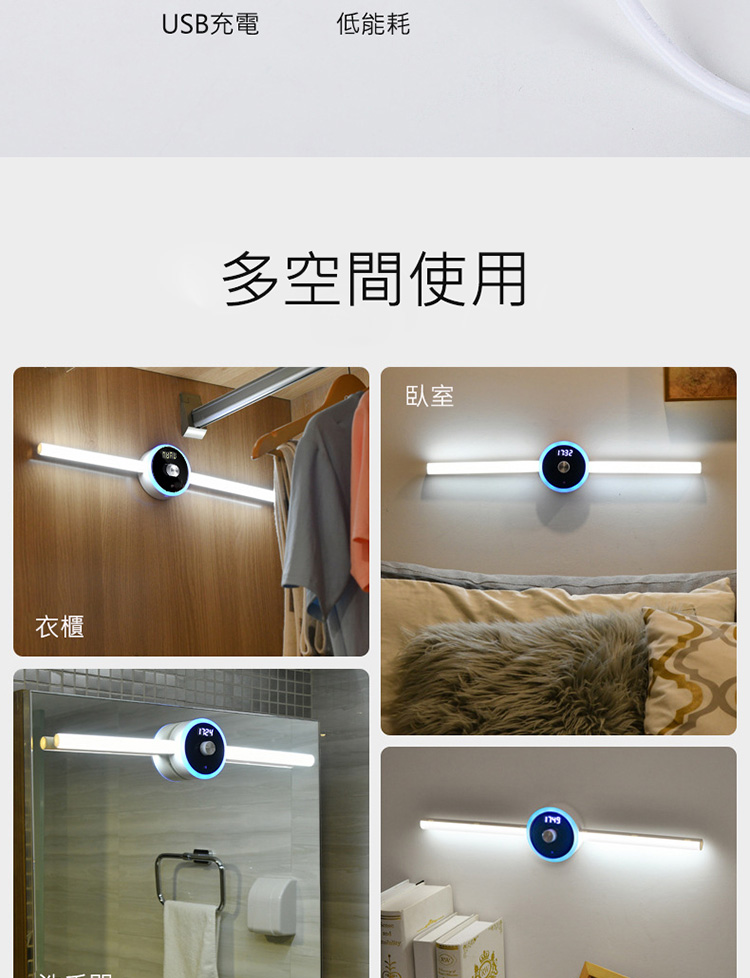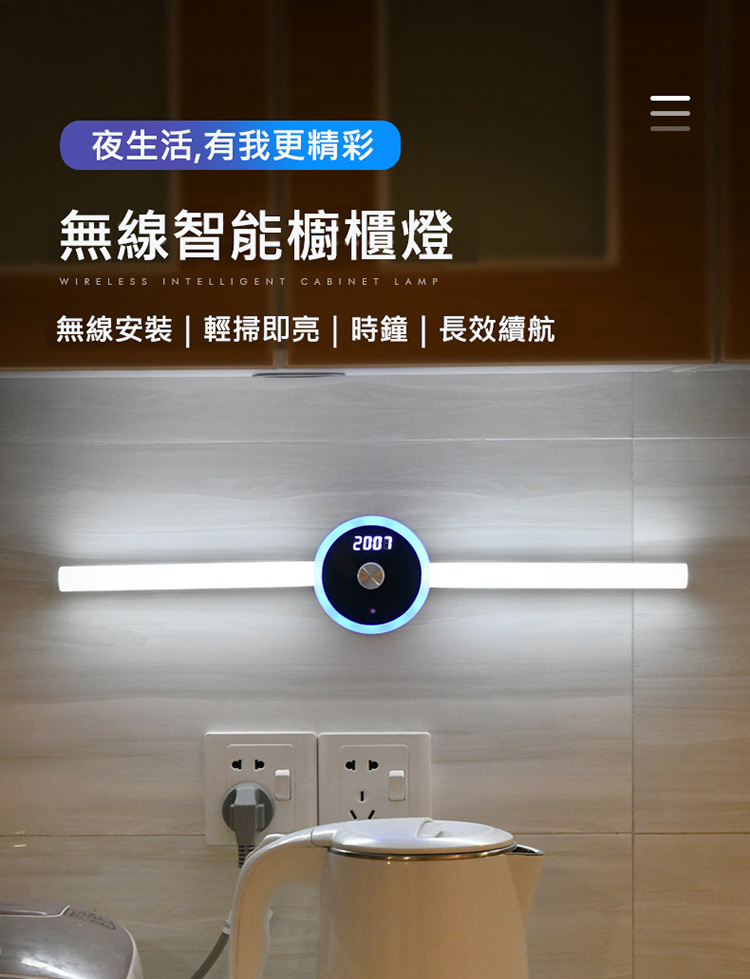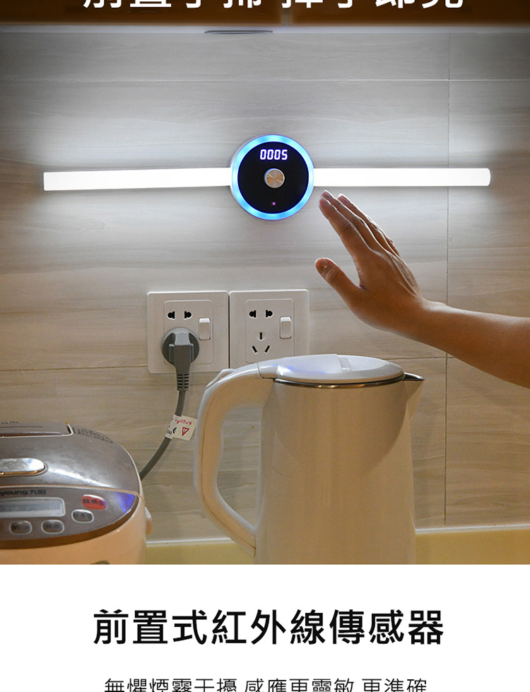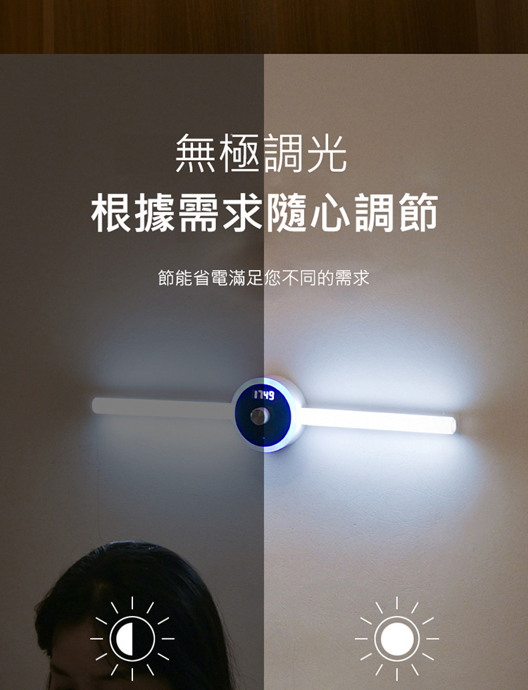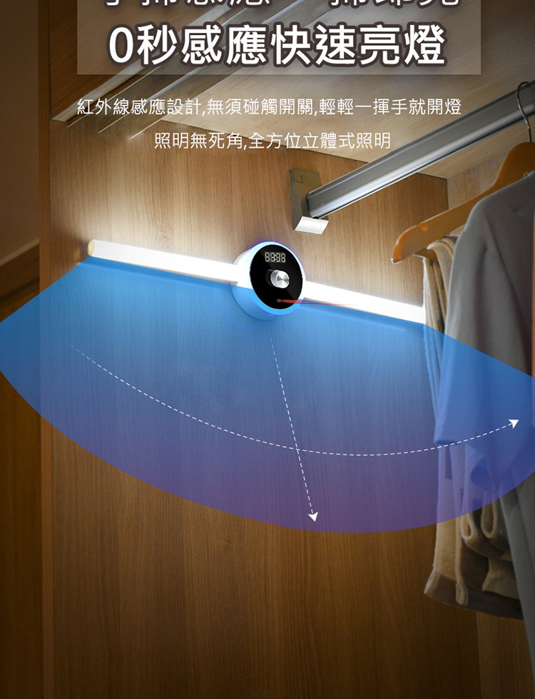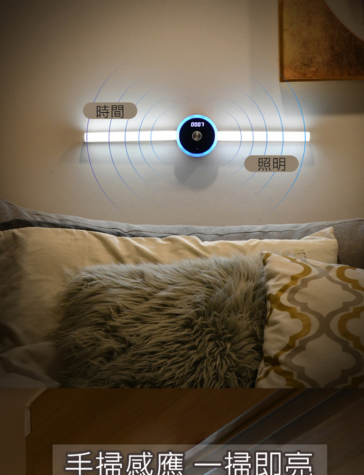 智能手掃感應燈 手掃亮燈 紅外線 時鐘顯示 無極調光 櫥櫃燈/夜燈/照明 (USB充電)