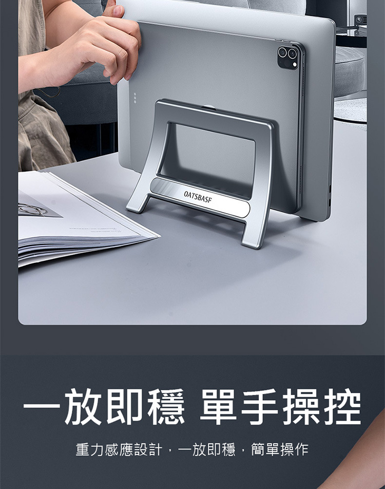 • 重力感應設計,一放即穩,無需調節