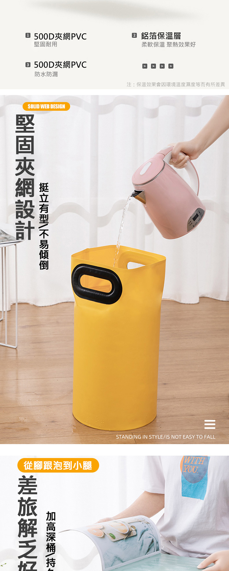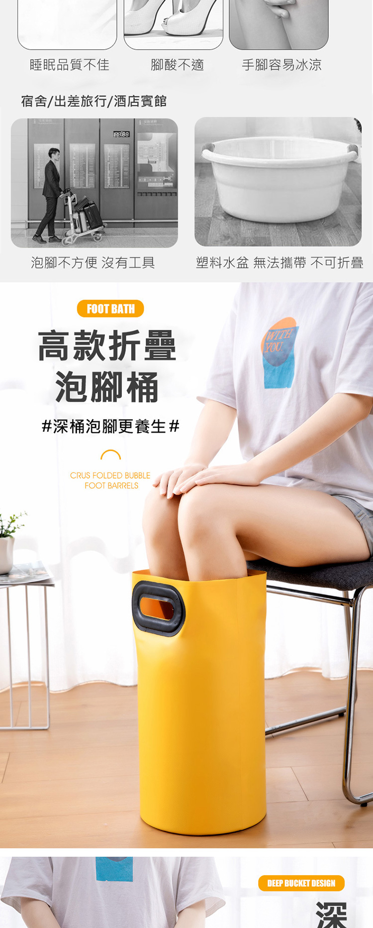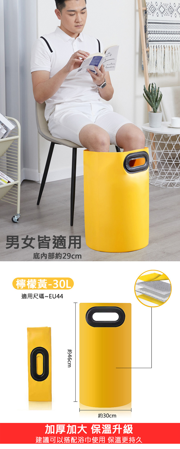 折疊泡腳桶 泡腳 泡腳水盆 足浴 高深桶 四層加厚 鋁箔保溫 便攜式 戶外旅游 (30L黃 21L藍)