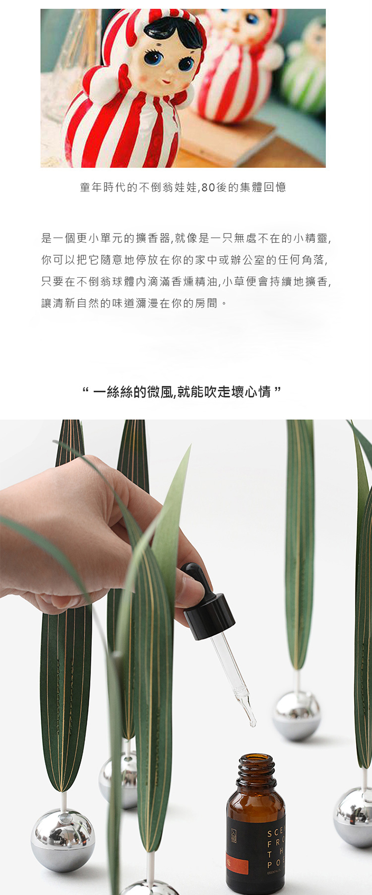 ◆商品尺寸:實木底座直徑約7.3cm/小草長約20cm/不倒翁擴香座直徑約3cm